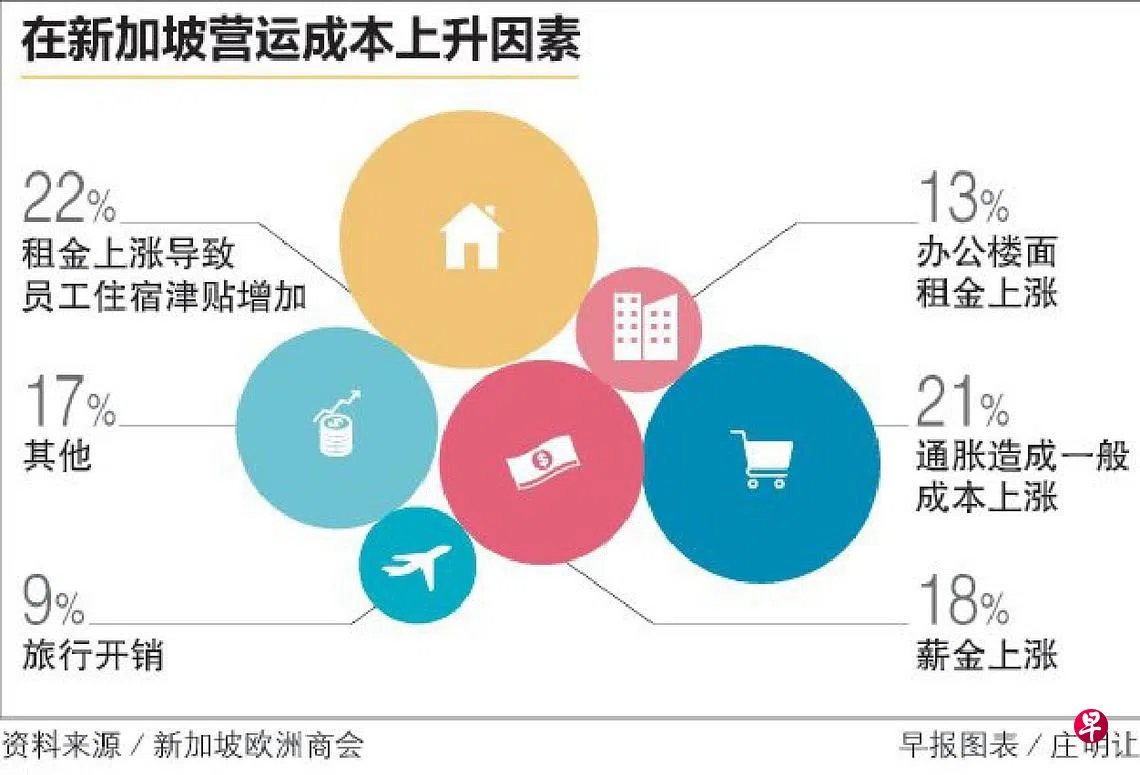 新加坡欧洲商会调查显示,新加坡的国际和本地商业社群正关注本地住宅和办公楼租金成本日益上升的情况,许多商会会员也面对着平衡盈利的挑战。