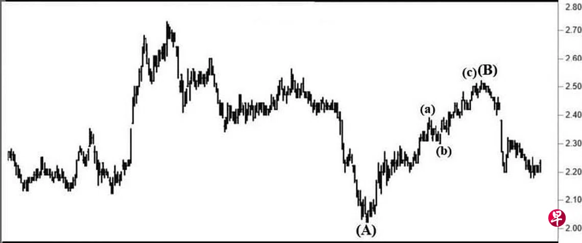 本栏于去年10月26日曾论及这只股票随时会跌穿1.85元的支撑点。当时股价为2.04元左右。股价过后缓缓回升,12月14日股价上升至2.39元,并于当天以“转向”信号完成了图中的(a)波,过后回扯至12月23日的2.30元,此为(b)波。12月27日股价骤然上升至2.38元,同时在介于2.34元与2.33元间留下缺口。今年1月3日股价回扯至2.33元,遂将此缺口填补,接着继续上升。2月2日股价上升至2.52元结束了(c)波,同时也为图中的(B)波画下句号,再次确定去年10月21日股价下探2.02元后,以“主要转向”信号为(A)波画下句号,旋进入(C)波跌势。2月20日股价骤然下跌至2.27元,同时在介于2.38元与2.43元间留下缺口。2月23日股价下跌至2.20元并出现回扯,无奈只是昙花一现,截至3月20日股价已经下试2.18元,短期内股价能否穿下位于2.02元的支撑点将是关键;一旦此价位失守,跌穿1.85元的重大支撑点也就水到渠成。