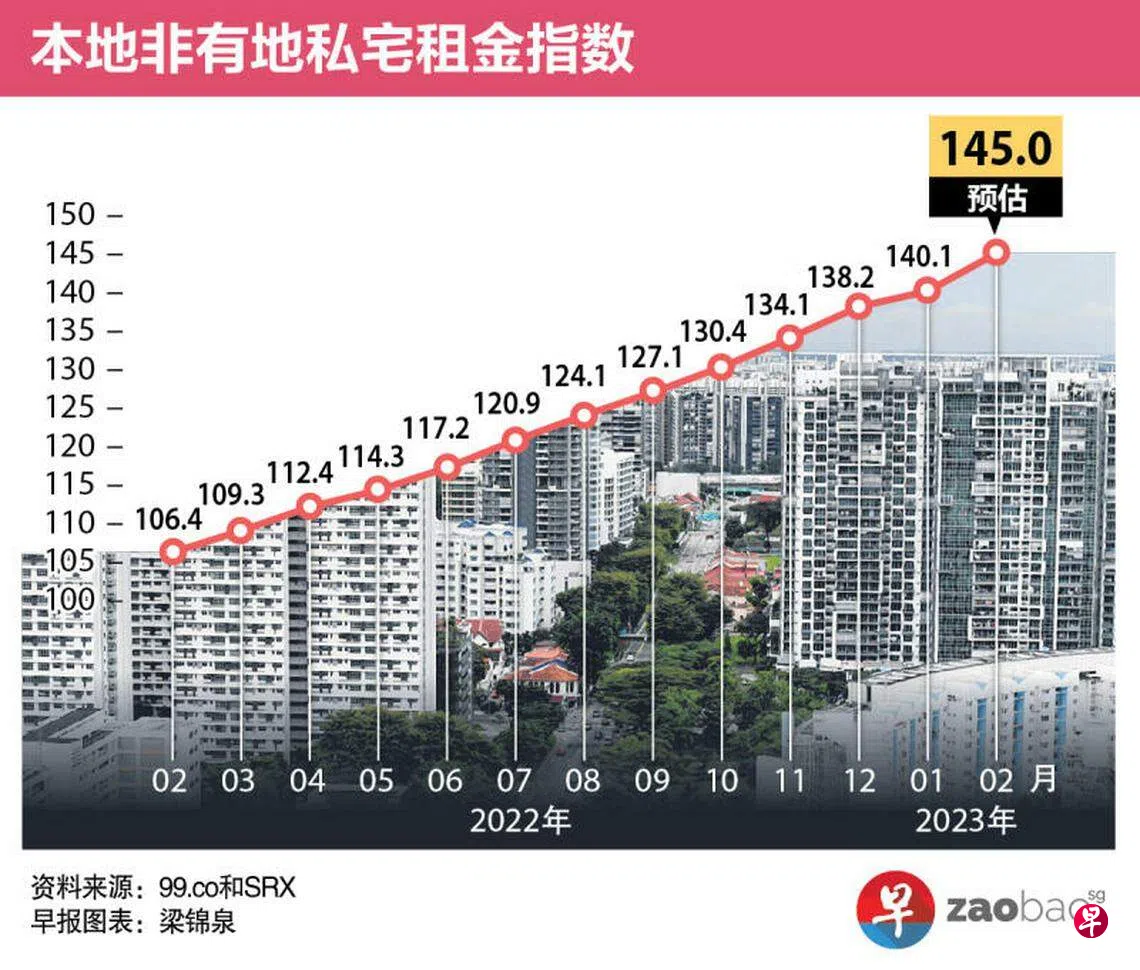 房地产网站99.co和SRX星期三(3月29日)发布的预估数据显示,2月份整体租金的涨幅高于1月份的1.4%。