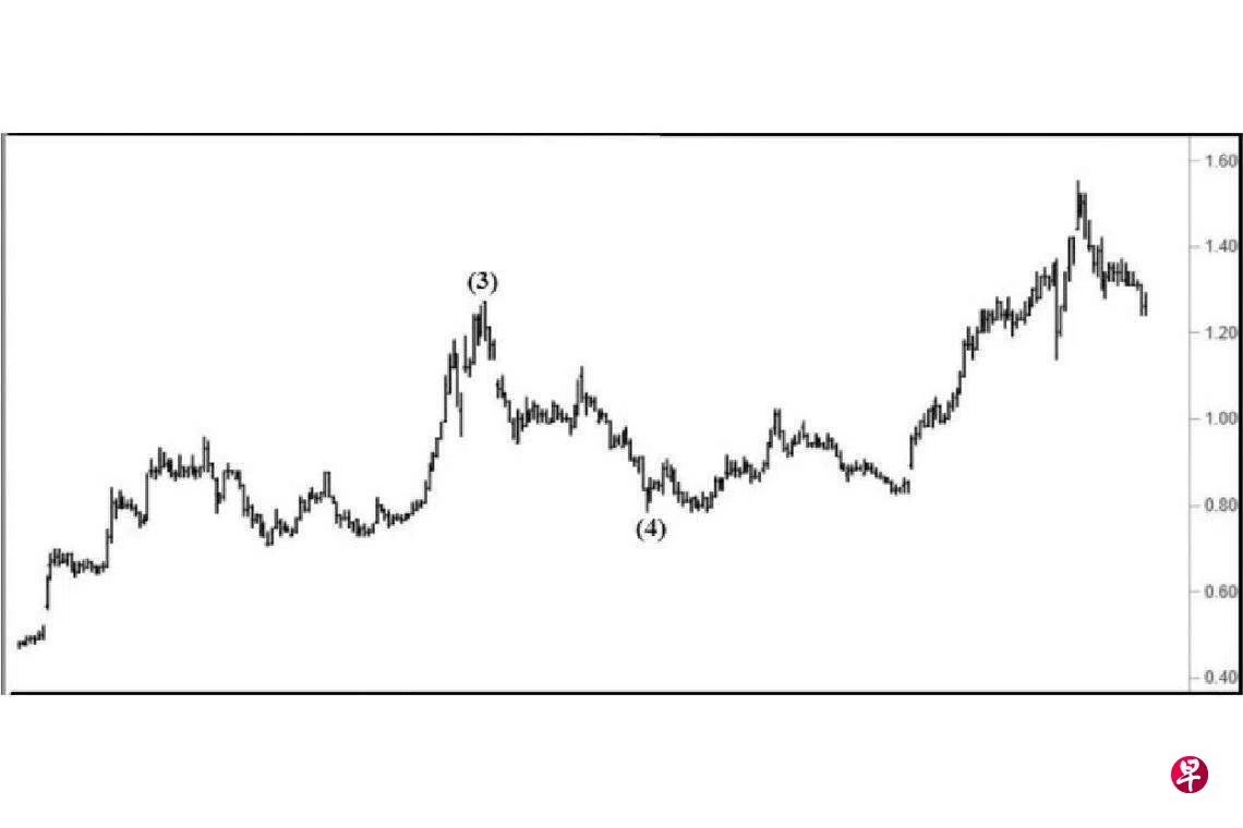 本栏于2021年4月17日曾论及这只股票已经完成C大波,旋止跌回升。短期回扯,股价或将向下填补介于0.215元与0.205元的缺口;过后回升填补介于0.41元与0.42元的缺口。当时股价为0.27元左右,可是股价过后仅于同年5月14日下试0.24元,未能填补上述第一个缺口,就转而回升。同年8月27日股价上升至0.43元,遂将上述第二个缺口填补,接着一路挺升至同年9月9日的0.57元,就开始形成一个“三角形”以替代第(2)波。2022年2月9日股价终于突破此“三角形”位于0.46元的上限,2月25日股价骤然上升至0.635元,同时在介于0.56元与0.50元间留下缺口。8月4日股价上升至1.27元,旋以“主要转向”信号完成了第(3)波,过后以三波回扯至9月30日的0.785元,此为第(4)波。因此,股价目前正处第(5)波升势,今年3月7日股价一度升试1.55元,可惜“动力”信号却日渐式微,倘若3月底股票闭市价在1.19元之下,则其每月一杆图将出现“转向”信号,迄时当带领股价进入跌势。