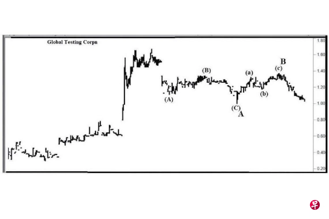 本栏于去年10月21日曾论及这只股票于10月11日股价骤然下探1.10元,同时再介于1.10元与1.21元间留下缺口。短期回扯,股价或将填补此缺口,过后当继续下滑,何况位于0.97元的目标尚未完成呢。当时股价为1.15元左右,见报当天股价一度下探1.00元完成了源自2022年4月19日从1.67元下跌以来,三波回扯中的(C)波,同时也为A波画下句号,接着渐渐回升。11月2日股价回升至1.21元,随即将上述第一个缺口填补。12月1日股价上升至1.32元结束了图中的(a)波,12月7日股价骤然下跌至1.20元,同时在介于1.25元于1.39元间留下缺口;12月13日股价跳空上升至1.32元,遂将此缺口填补。今年元月5日股价下试1.18元完成了(b)波。2月13日股价上升至1.37元,随即以“主要转向”信号结束了(c)波,过后又于其每月一杆图以“转向”信号为B波画下句号,遂进入C波跌势。截至4月3日股价已经下试1.03元,至于能否完成上述位于0.97元的目标,当拭目以待。