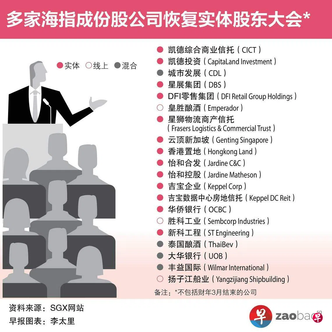 防疫措施全面解除后,多家新加坡海峡时报指数成份股公司今年恢复实体常年股东大会。专家对此表示认可,但仍建议公司采取混合形式,让更多股东能参与会议,并给予更多空间发表意见。