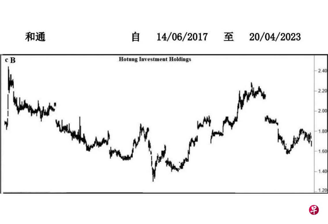这只股票自1998年8月18日下探0.95元完成了三波中的(A)波后,随即回扯至1999年7月2日的7.00元,并于每月一杆图以“转向”信号结束了(B)波,接着进入具三波的(C)波跌势。2003年3月19日股价下跌至0.70元,旋于每月一杆图以“主要转向”信号完成了(a)波,过后以三波回扯至2007年7月5日的1.80元,此为(b)波。2008年10月31日股价下跌至0.50元结束了(c)波,同时为(C)波画下句号,也成就了A大波。2011年4月1日股价上升至1.85元完成了a波,过后向下回扯至同年11月28日的1.17元,且于每日及每周一杆图皆以“主要转向”信号结束了b波。2017年7月11日股价上升至2.44元,结束了c波,也为B大波画下句号,旋进入C大波跌势。2020年3月23日股价一度下探1.30元,过后回升至2022年2月8日的2.28元;同年10月17日股价已经下滑至1.57元。估计短期回扯股价或将向上填补介于1.95元与2.15元间的缺口,过后重返跌势,并在跌穿1.30元的支撑点时出现骤跌。