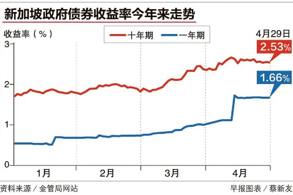 新加坡政府国库券接下来的走势也备受关注。上一批在4月26日拍卖截止的六个月国库券截止收益率为3.83%,高于之前一批在4月13日拍卖截止的六个月国库券取得的3.75%。