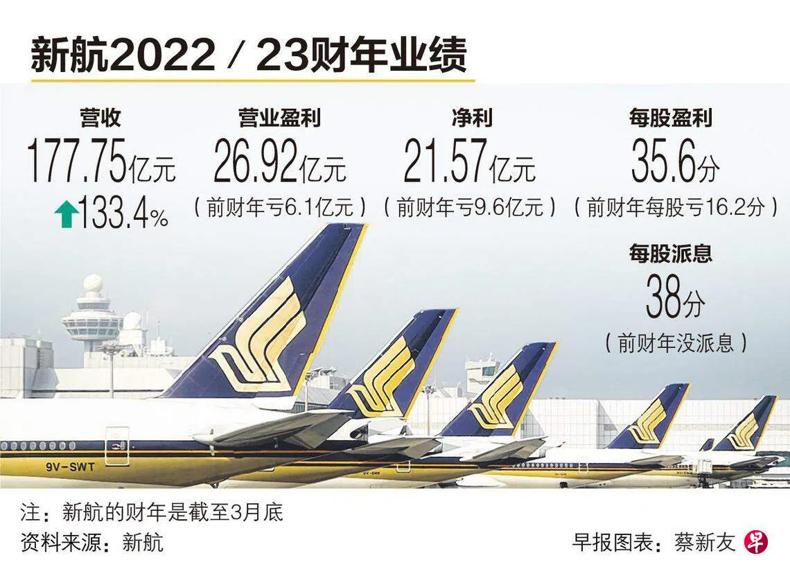 强劲的需求推动新加坡航空公司集团全年转亏为盈,取得创立76年来的最高年度净利。集团隔了三年艰辛冠病疫情期再度派发年终股息,每股28分。