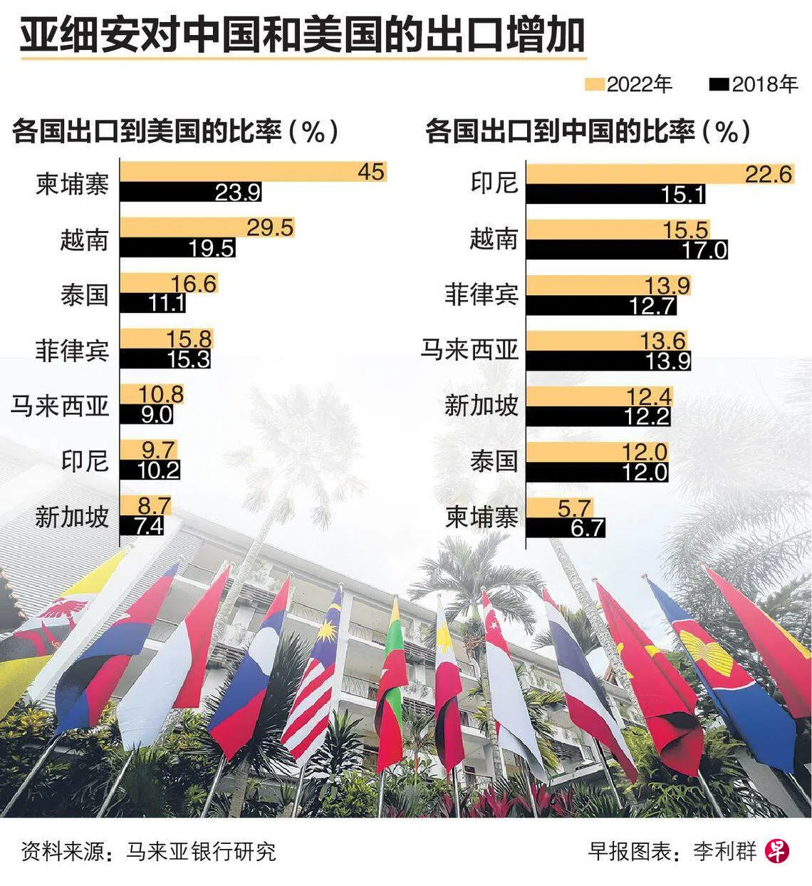 中国和美国之间的竞争导致贸易和投资部署大洗牌,尽管亚细安难以幸免遭受冲击,但本区域采取中立姿态至今让它从中受惠,亚细安对美国和中国的出口去年双双增加。