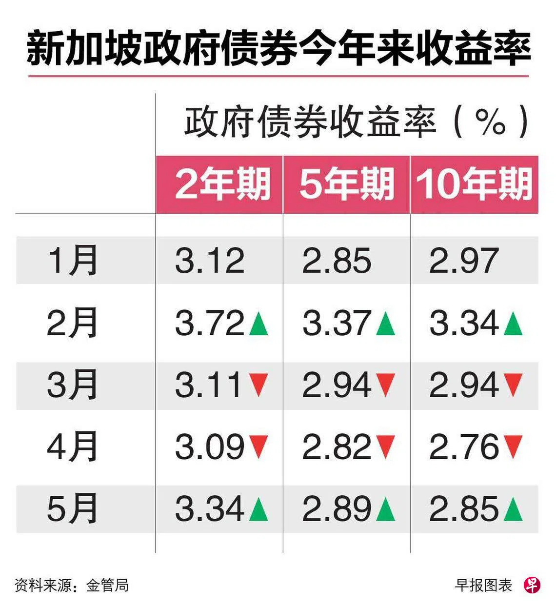 根据新加坡金融管理局上星期四(5月25日)公布的拍卖结果,最新一批六个月国库券(T-Bills)的截止收益率为3.85%,比前一批高出七个基点。