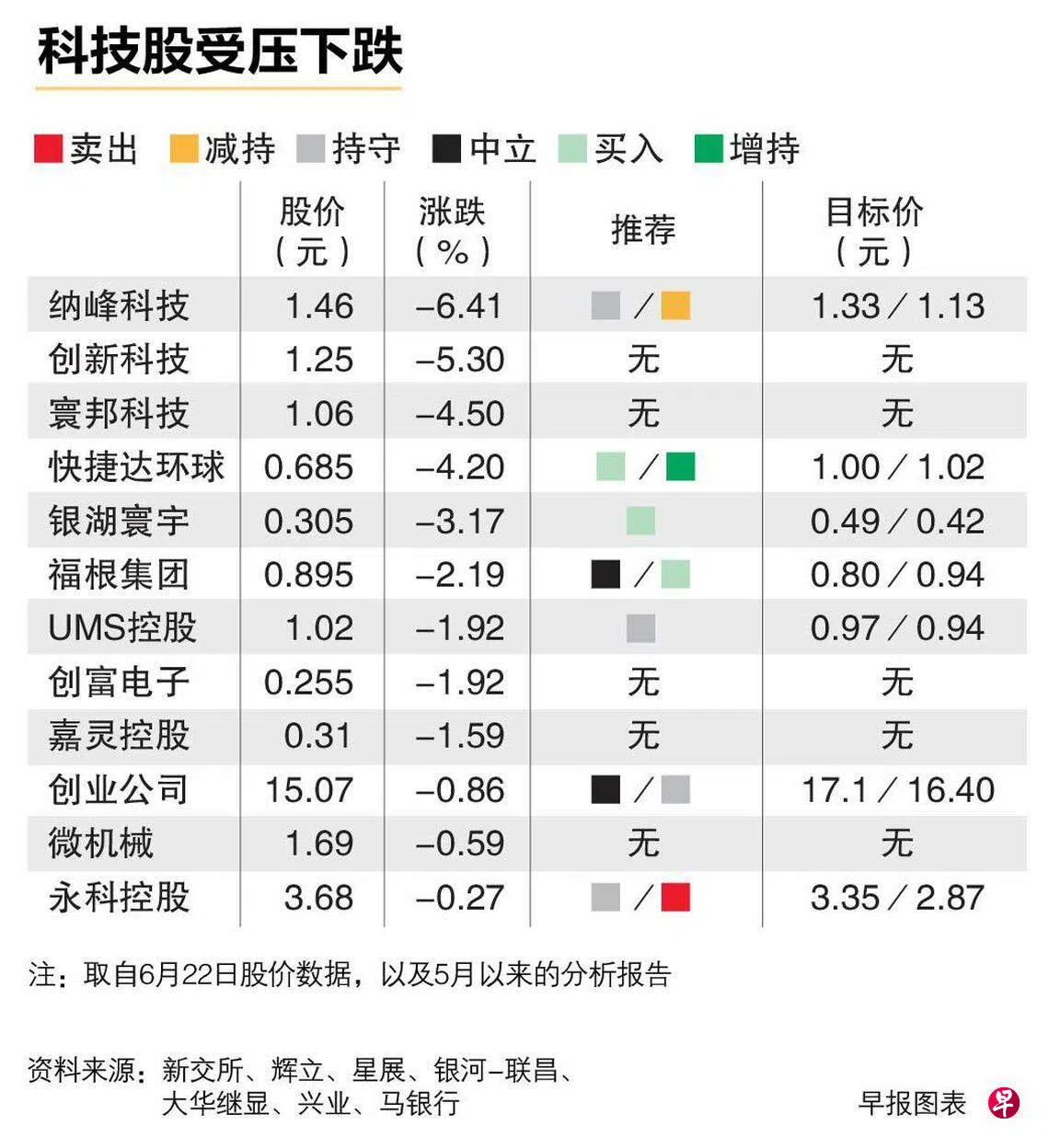 本地科技股近日受美国科技股回跌影响,快捷达环球(Aztech Global)和纳峰科技(Nanofilm)等星期四(6月22日)猛跌4.2%至6.4%,且不少公司连续几天下跌。分析师认为,科技股表现将继续受美国经济表现和利率走向影响。