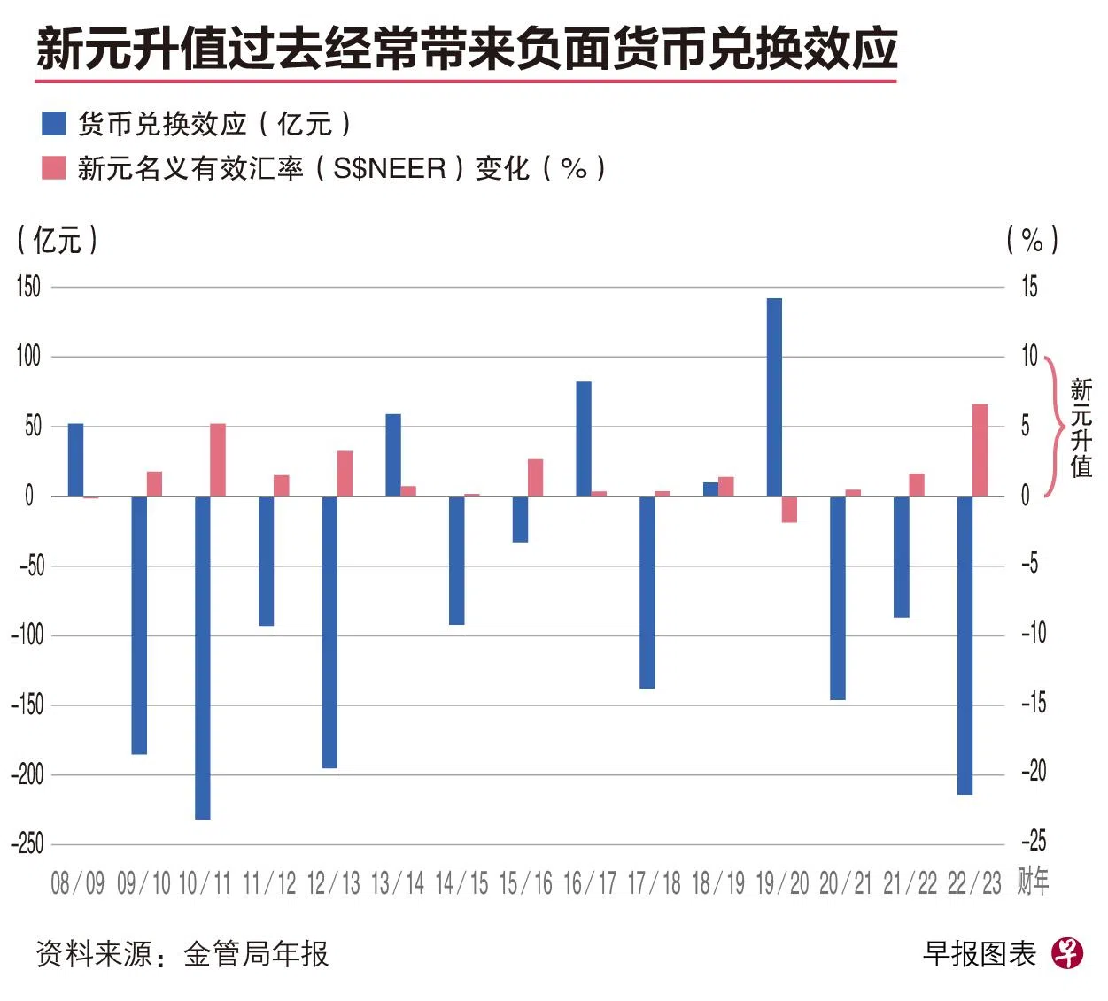 新元的贸易加权汇率(trade-weighted exchange rate)在这个财年上升6.5%,为10年来最大升值幅度。