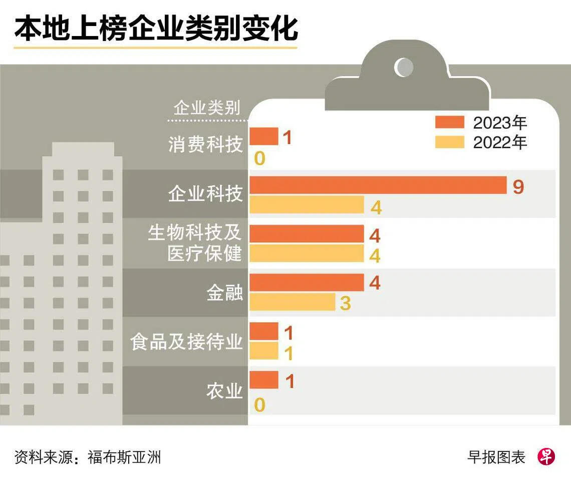 《福布斯亚洲》星期二(8月29日)公布2023年上榜的公司,我国上榜的公司数目比去年的19家多一家。紧追在后的同样是香港,以15家企业上榜排第二,不过数量比去年少一家;中国大陆有11家企业上榜,去年有13家,而新兴创新中心印度尼西亚和菲律宾分别有11家和九家公司上榜。
