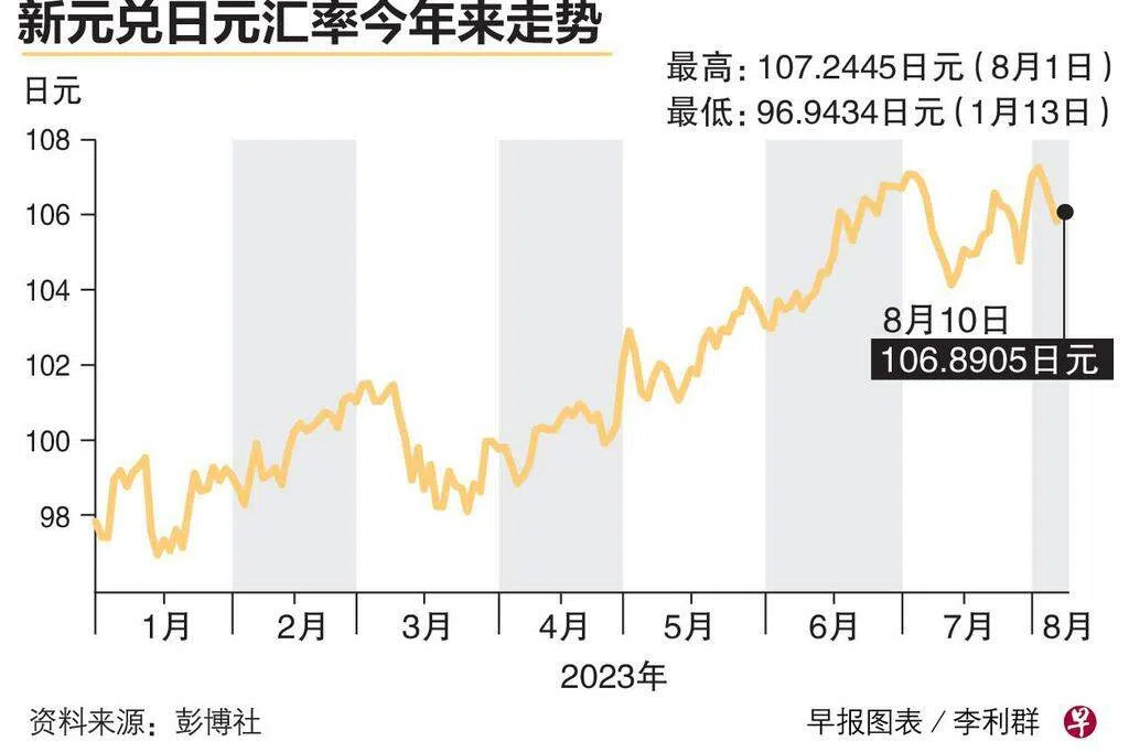 截至星期二(8月29日)傍晚6时,新元兑日元汇率达到108.24,是自1989年有记录以来的新高。