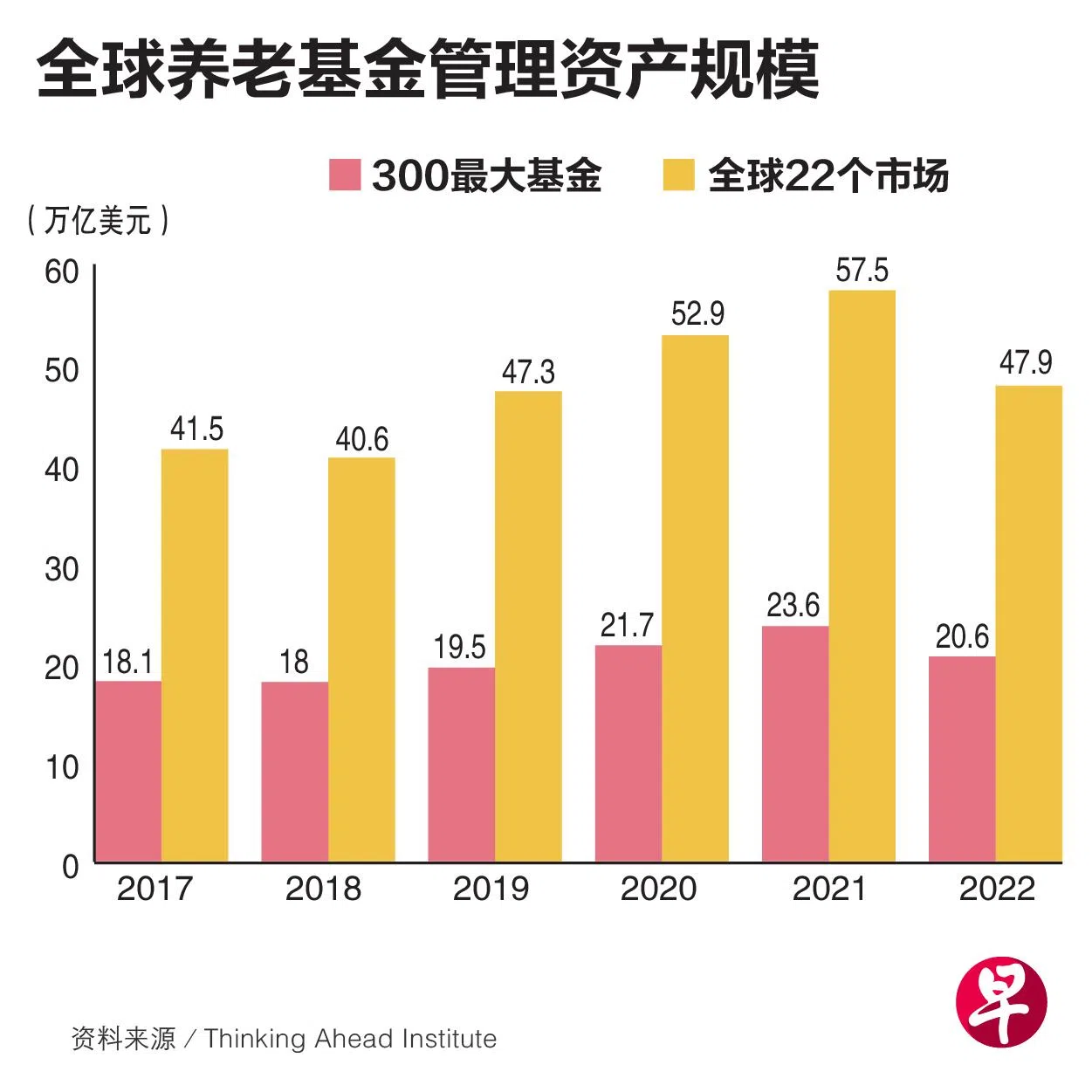 Thinking Ahead Institute也对22个主要养老金市场的各种规模养老金进行研究,资产总额达47.9万亿美元。