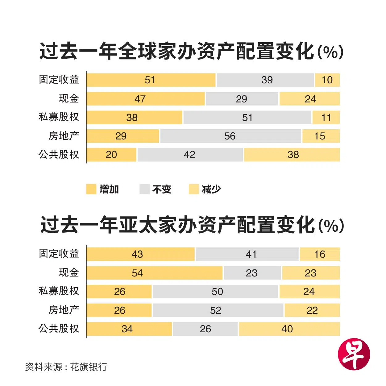 花旗报告是对268个家办进行调查得出,旨在评估在地缘政治紧张局势、宏观经济阻力和市场波动的背景下,家办投资情绪和投资组合行动。受访者总净值达5650亿美元(约7688亿新元)。