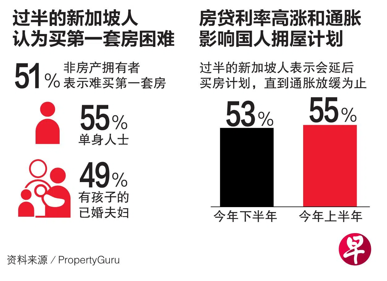 越来越多国人计划在短期内买房,但因房贷利率高涨和通货膨胀,过半新加坡人表示难以购入人生中的第一套房,尤其是单身人士和有孩子的已婚夫妇。