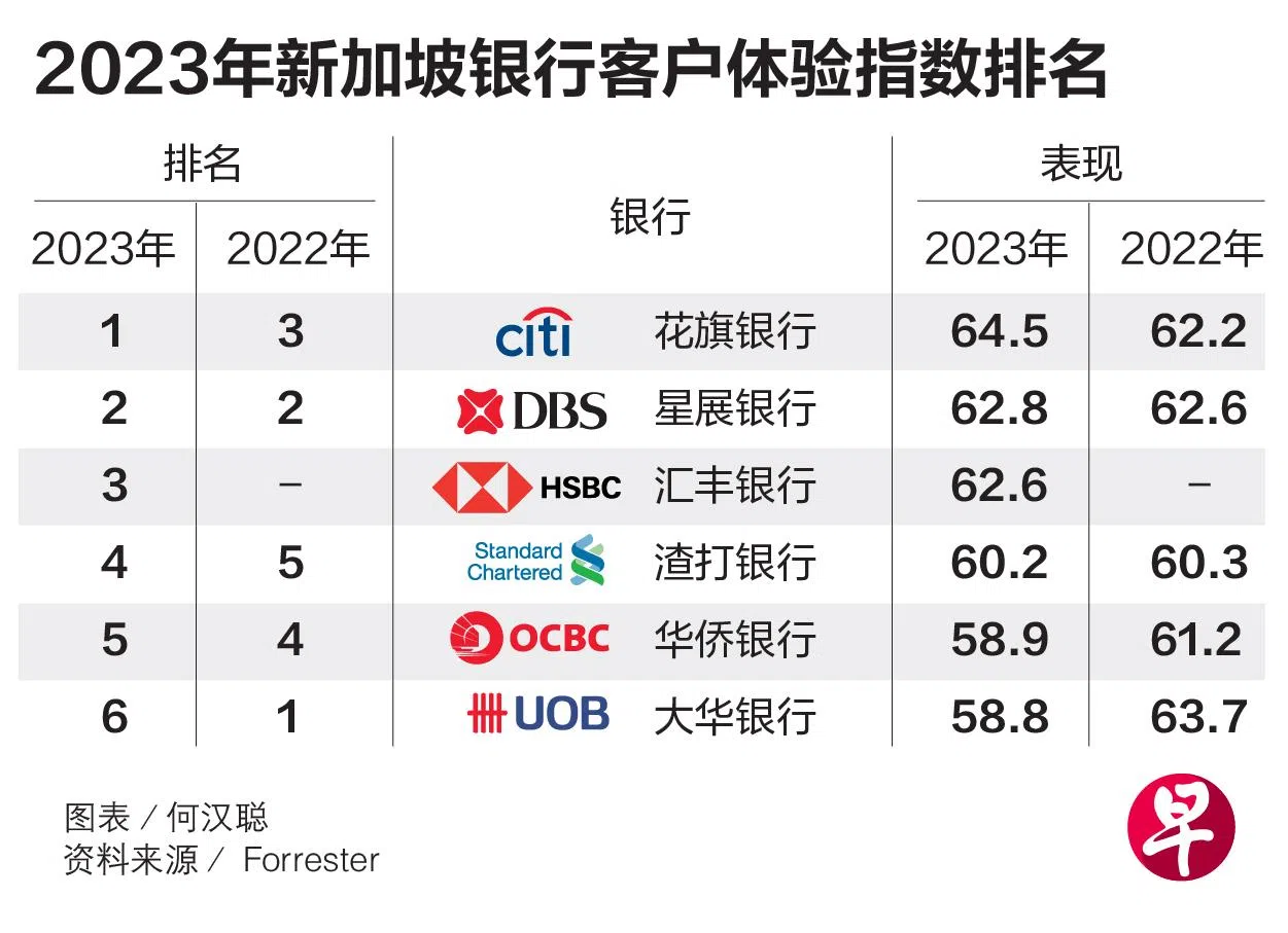 根据刚出炉的商业咨询公司Forrester 2023年客户体验指数 (Customer Experience Index,简称CX指数),花旗银行(Citibank)从去年的第三位来到今年的第一位,星展银行保持第二,排名第三的汇丰银行(HSBC)是首次登上CX指数。
