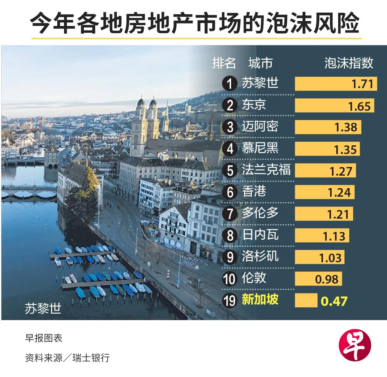 物价和房贷利率高涨促使全球房价下滑,房地产市场泡沫风险也下降,今年只有两座城市的住房市场可能出现泡沫,比去年少了七座,而新加坡的房价也稍微回稳。