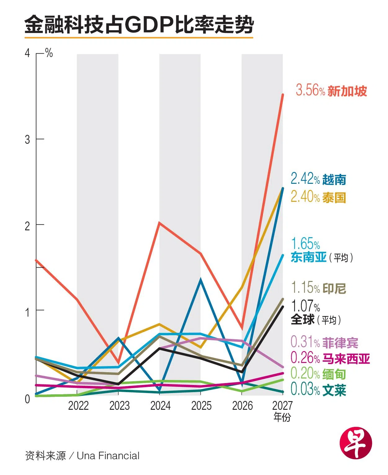 一份最新研究显示,金融科技业投资到了2027年将占我国国内生产总值(GDP)的3.56%,这个占比料是东南亚国家中最高的。