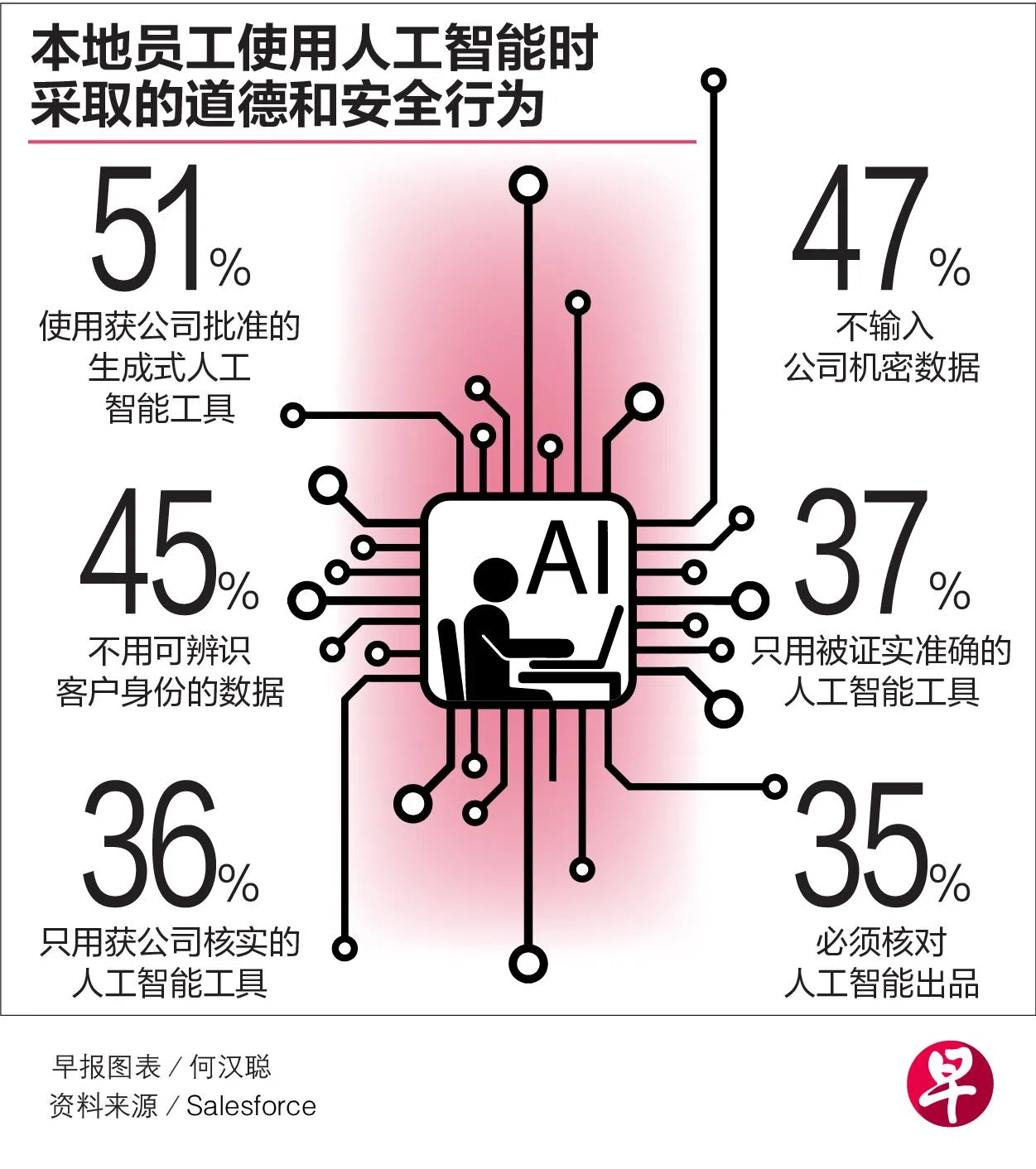根据云软件公司Salesforce的一项调查结果,新加坡人认为生成式人工智能(Generative AI)能为工作带来好处,尤其是在提高生产力和升职方面。可是他们当中有许多人对人工智能的行为准则和安全知识有限,以致于可能会把人工智能的作品当作是自己完成的,或使用被公司禁用的生成式人工智能平台。