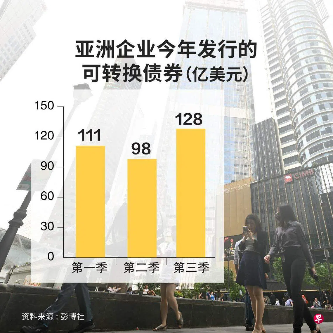 根据彭博社数据,今年第三季亚洲发行的可转换债券(convertible bond)总额达到了128亿美元,是去年第一季来最高的。
