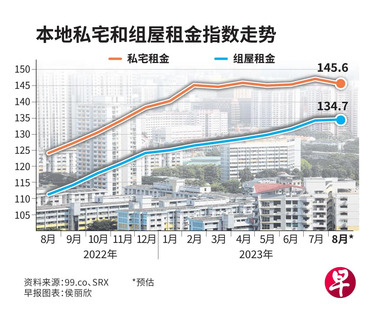 本地非有地私宅租金8月份环比下跌1%,交易量环比下滑7.6%。组屋租金的涨势也放缓至0.1%。分析师认为,这显示私宅和组屋租赁市场正逐步回稳。