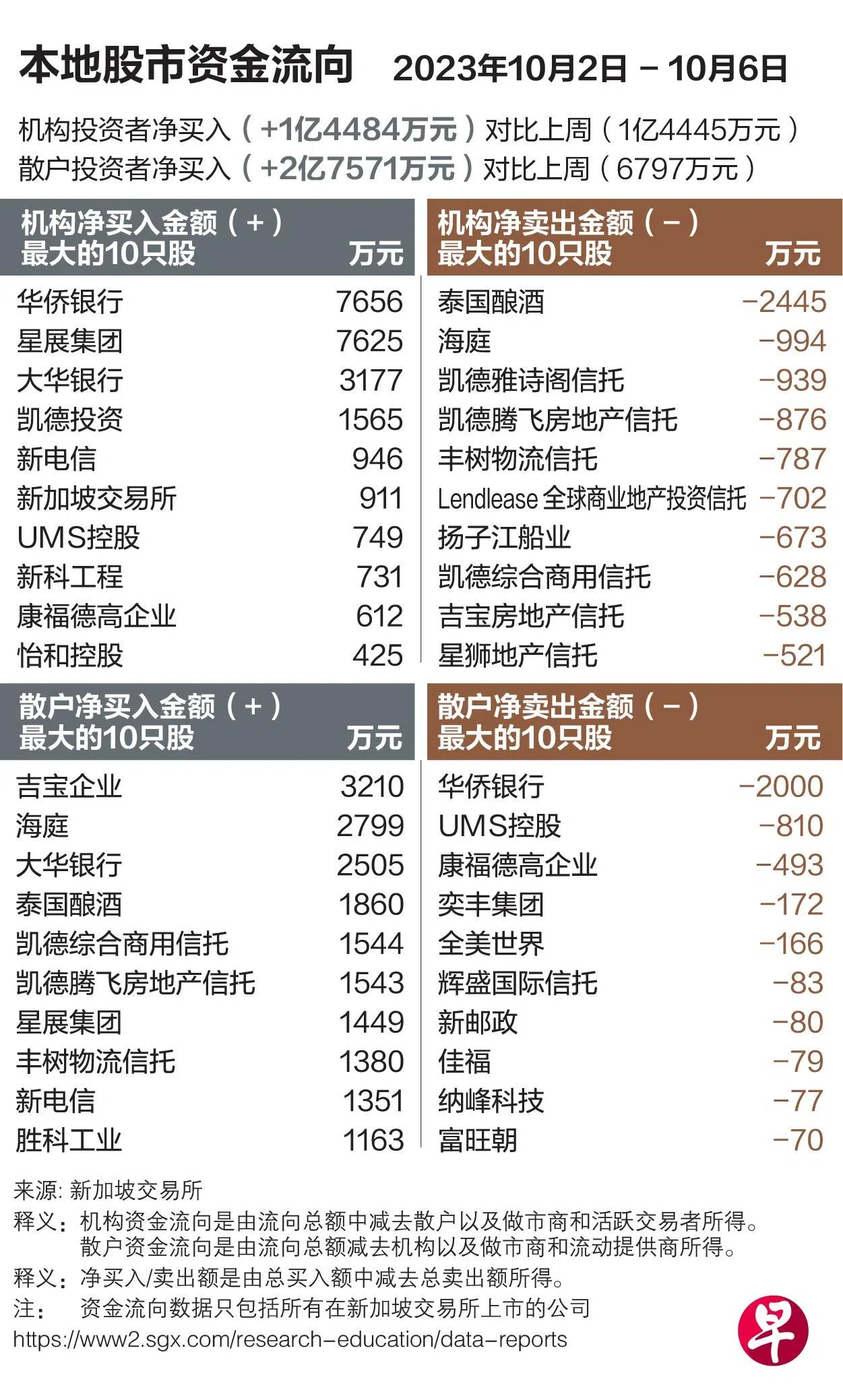 吉宝企业(Keppel Corp)受到散户的青睐,净买入金额达3210万元。散户售出套利最多的股是华侨银行,金额达2000万元。