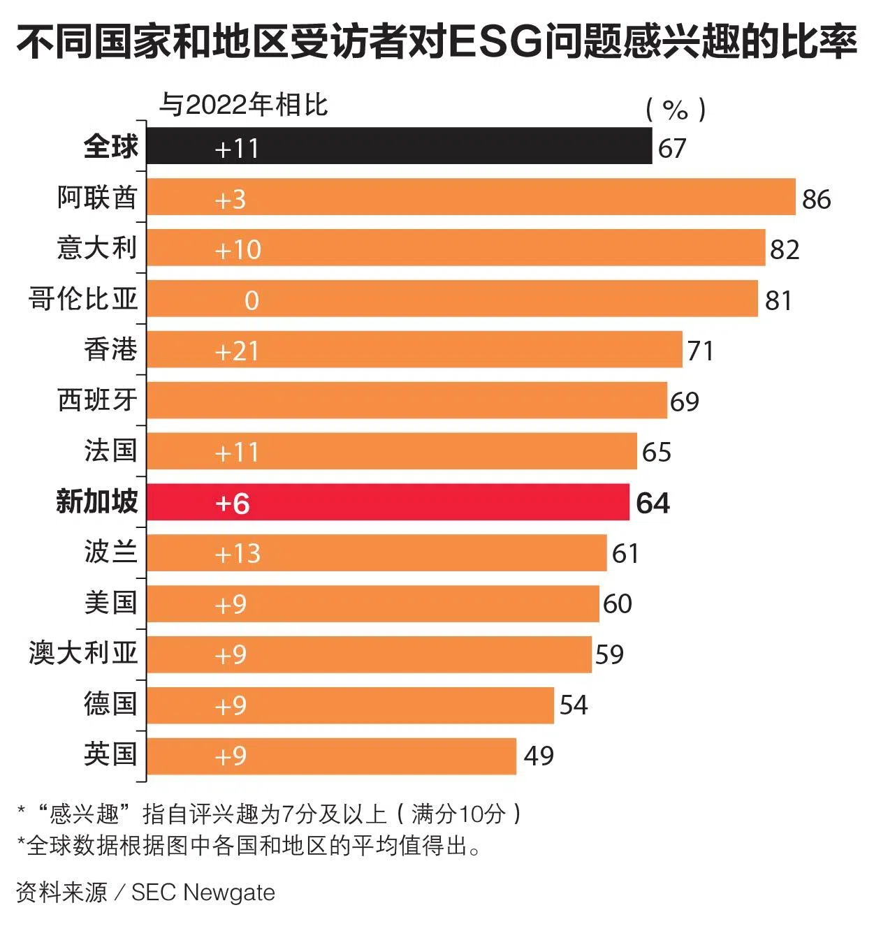 本地受访者对ESG问题感兴趣的比率为64%,比去年高出六个百分点,略低于全球平均水平(67%),在12个国家和地区中位列第七。