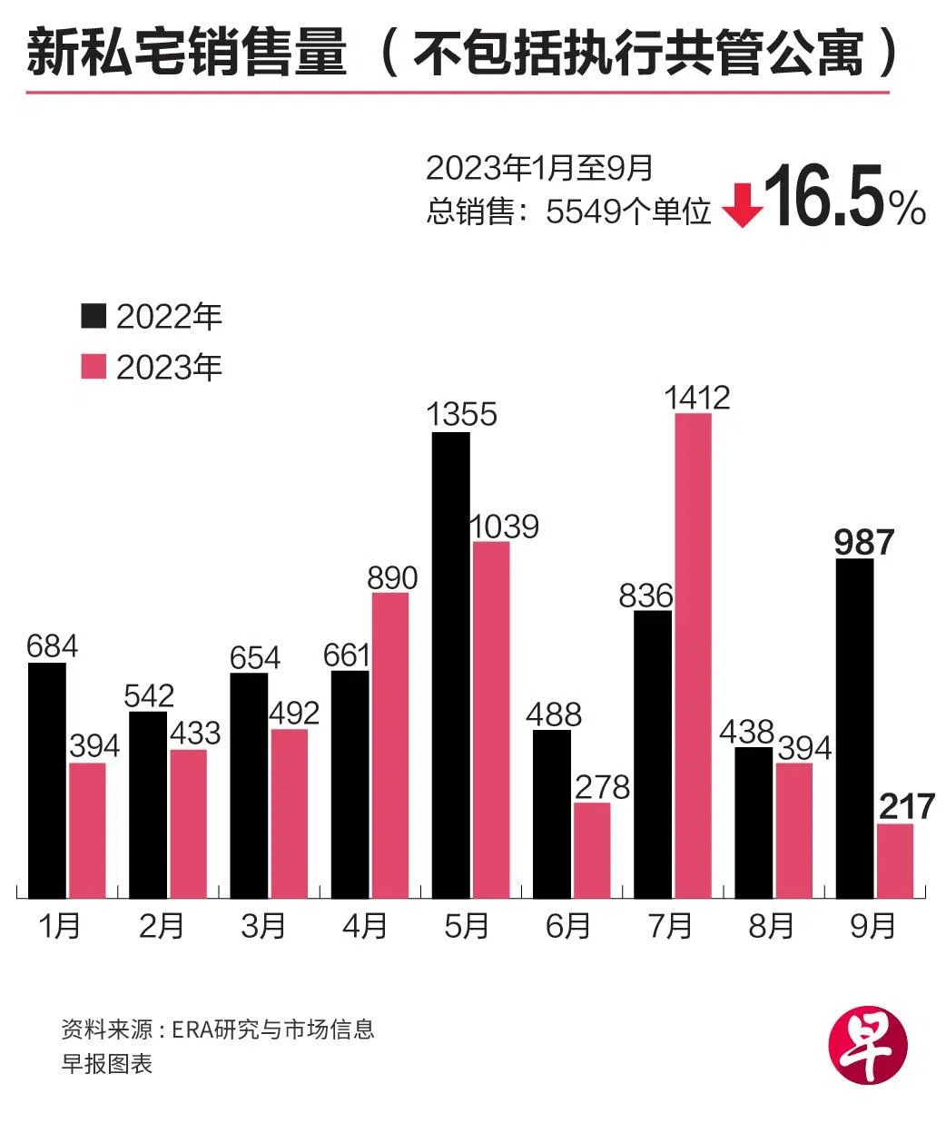 房地产市场情绪减弱和缺乏新项目推出,导致9月的新私宅销量环比下跌44.9%,只有217个单位卖出,为今年迄今最低纪录。