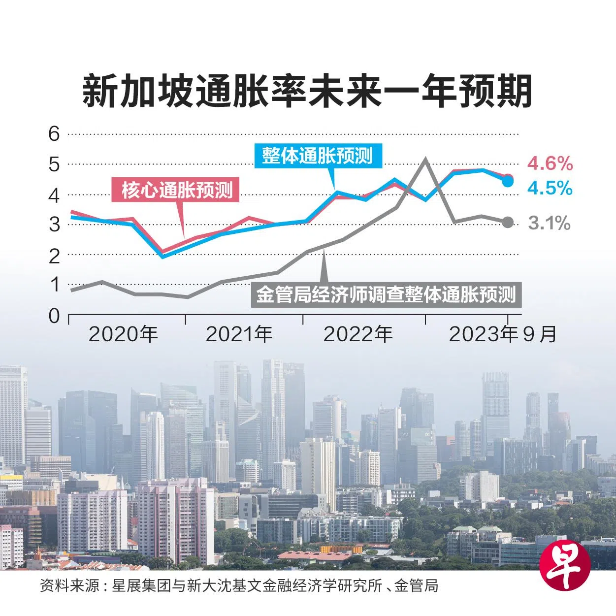 星展集团与新加坡管理大学沈基文金融经济学研究所(SKBI)在星期二(10月17日)联合发表的新加坡通胀预测指数(SInDEx)报告显示,今年9月消费者对未来一年的整体通胀率预测从6月时的4.9%下跌至4.5%。