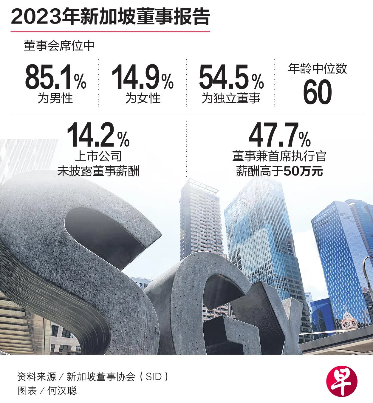 新加坡董事协会(SID)星期三(10月18日)发布2023年新加坡上市公司董事调查报告,透露以上信息。该报告基于650家上市实体截至2022年12月31日的财年信息进行编制,共调查3261名董事。