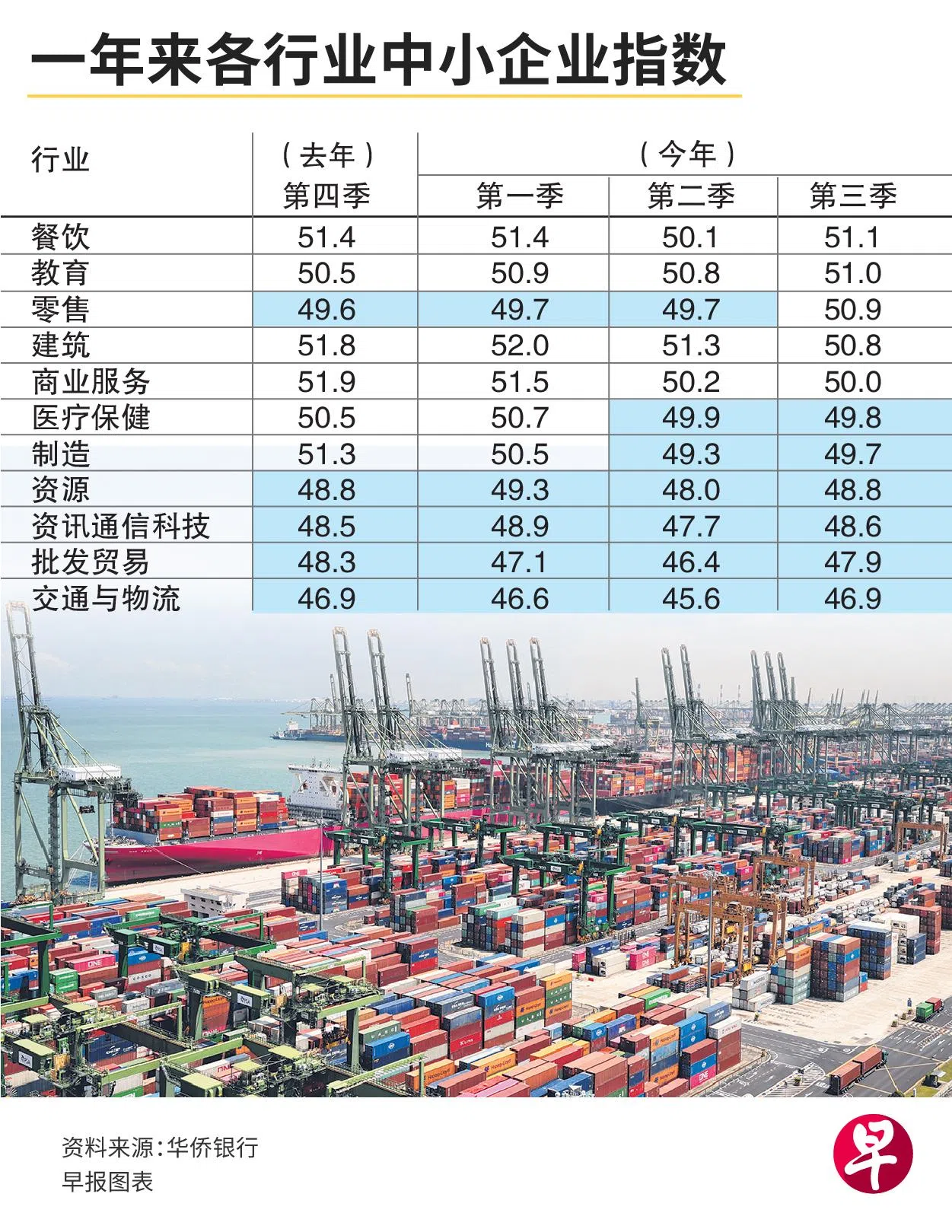 外部需求疲软,新加坡中小企业业务连续三个季度萎缩。不过,今年第三季中小企业整体指数为49.6,较第二季的49.0有所回暖。