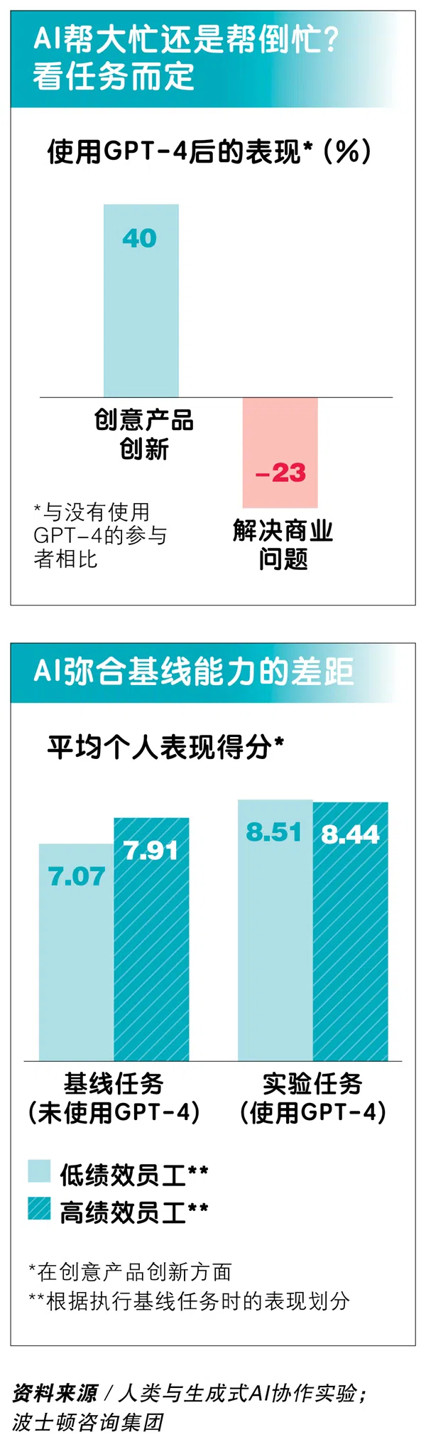 这是美国波士顿咨询集团今年以旗下全球750多名顾问为研究对象,进行一项称为“人类与生成式AI协作实验”后,所得到的发现。来自美国哈佛商学院等四所英美顶尖大学的学者协助进行调查。