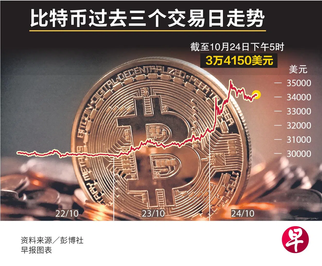 市场对美国将出现第一只现货比特币挂牌基金(ETF)重燃信心,推动比特币一度升破3万5000美元(约4万7731新元),创自去年5月以来最高位。