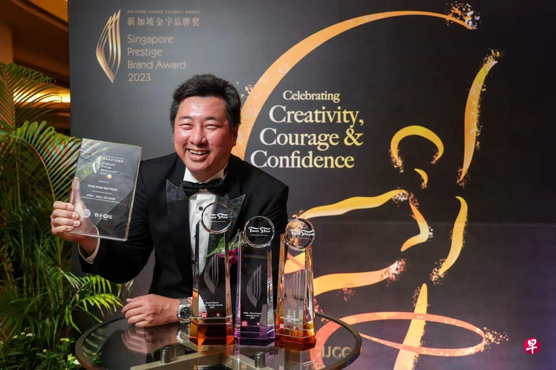 本地家喻户晓的老字号床褥品牌四星(Four Star)在星期三(10月25日)举行的2023新加坡金字品牌奖颁奖典礼上, 一举拿下三个奖项,成为当晚大赢家。拥有其50%股权的贤能集团(LHN Limited)也收获颇丰,旗下另两个子品牌首次参赛均获奖。