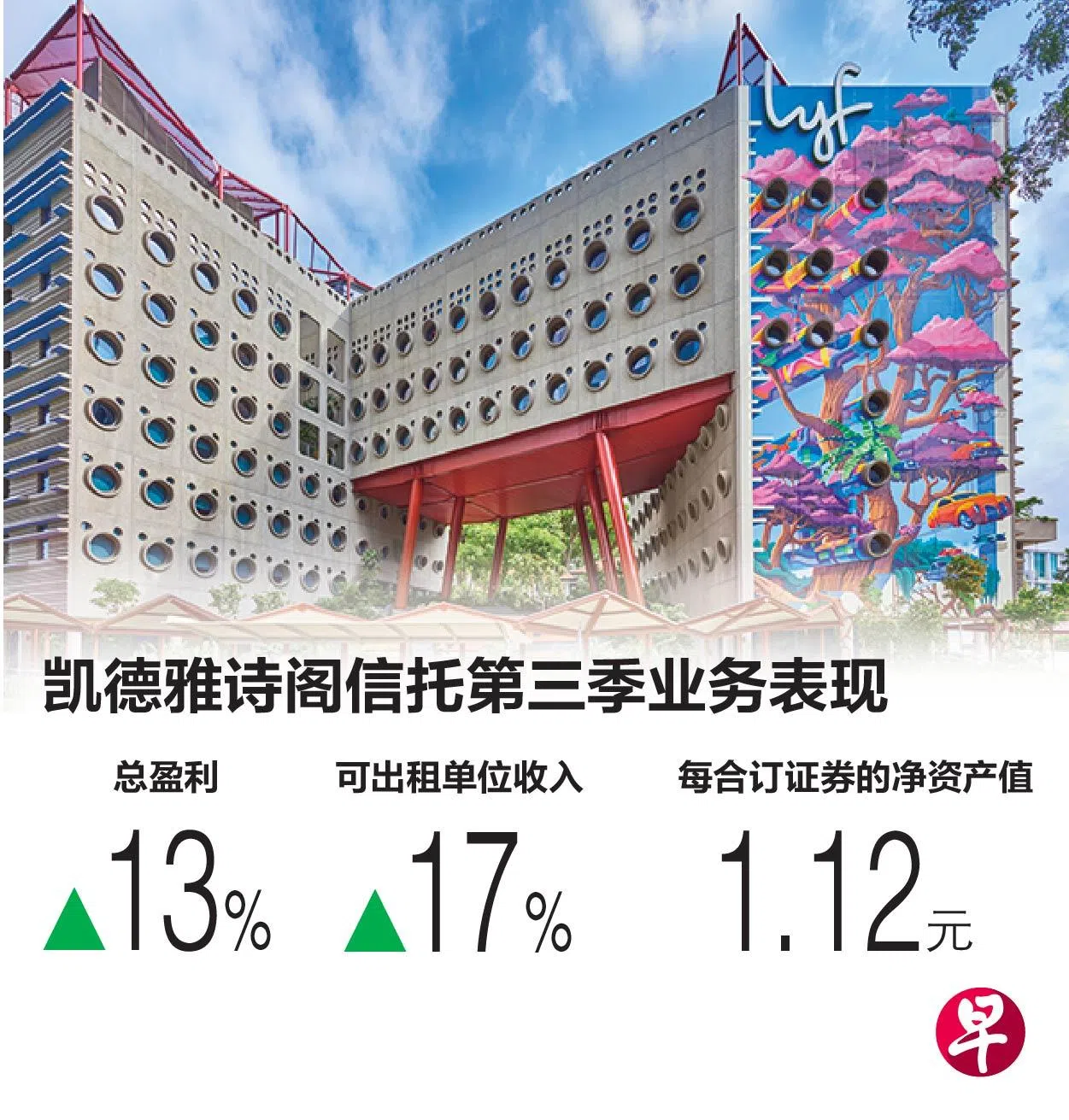 凯德雅诗阁信托(CapitaLand Ascott Trust)今年第三季的总盈利同比增加13%,主要因收入涨幅抵消了营运和融资成本上升的影响。