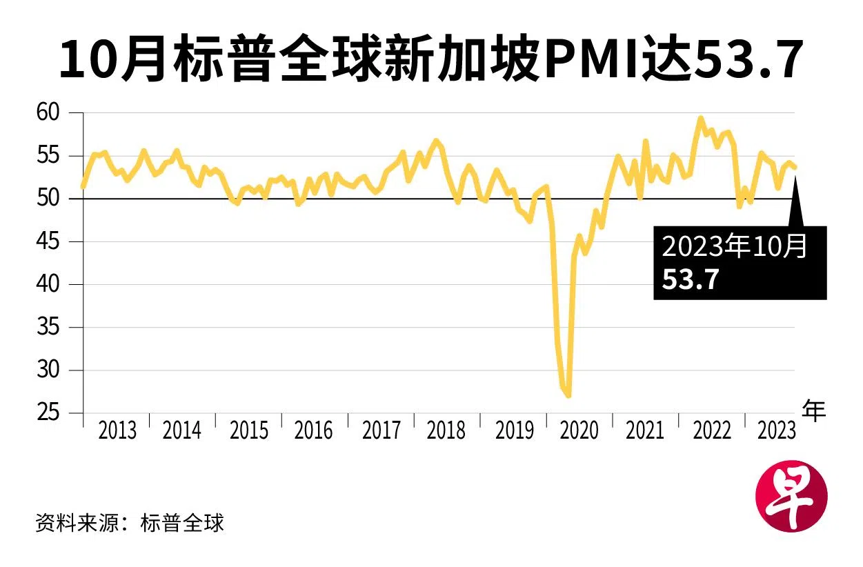 根据标普全球(S&P Global)星期五(11月3日)发布的最新调查。尽管私营领域仍继续扩张,经季节性调整的标普全球新加坡采购经理指数(PMI)从9月的54.2下跌至10月的53.7,因为受新出口订单下跌的影响。