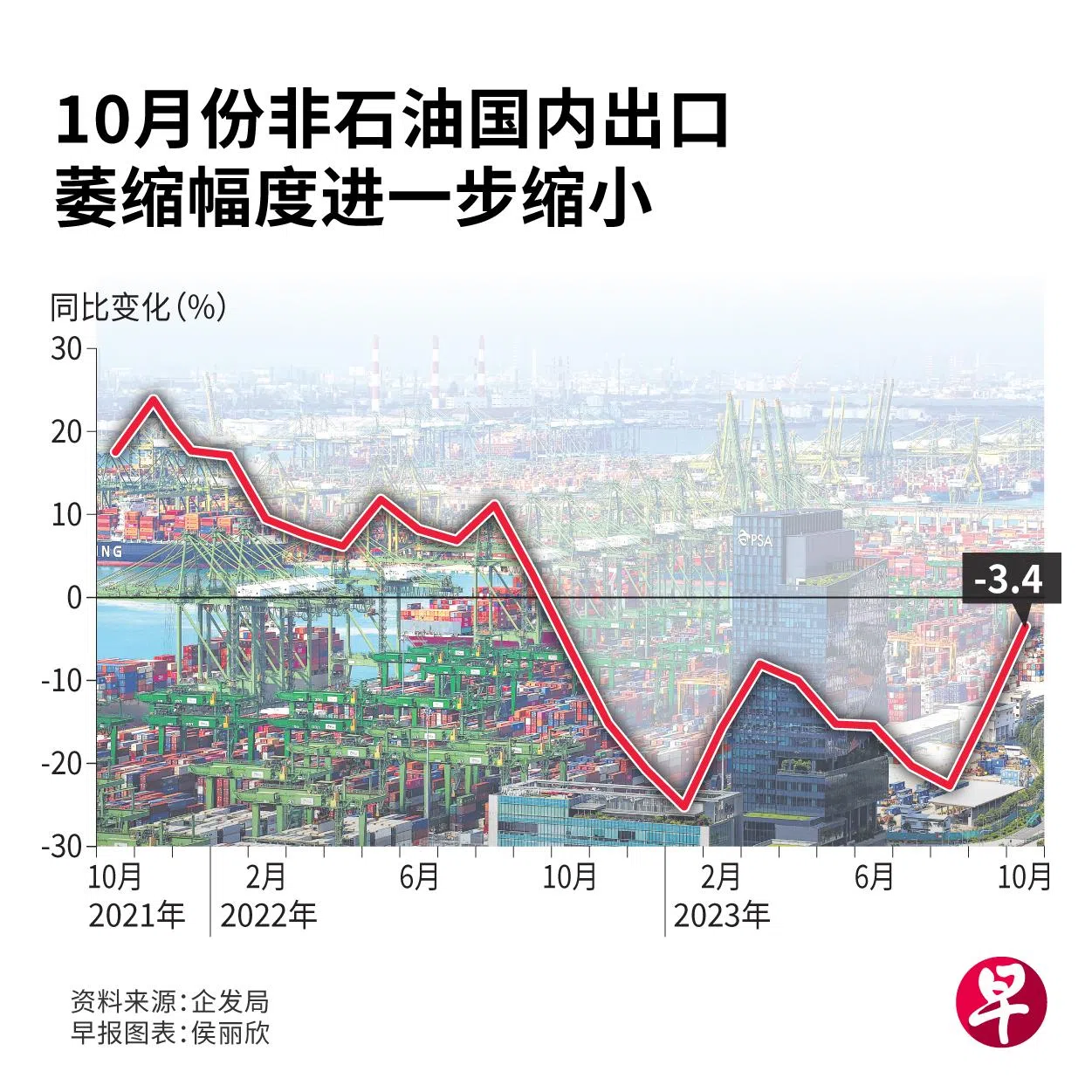 华侨银行首席经济师林秀心说,非石油国内出口今年以来已萎缩15%,假设11月至12月的非石油国内出口回升至增长2.8%,全年萎缩幅度可能达到12.5%。如果这个情况成真,这会是非石油国内出口自2021年以来最糟糕的表现,当年萎缩幅度为14.5%。