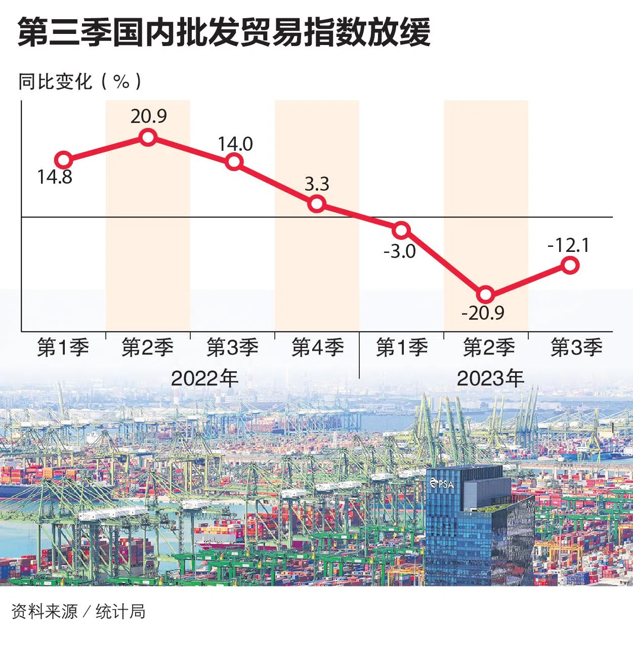 新加坡统计局星期一(11月20日)发布的批发贸易指数显示,若不包括石油贸易,第三季国内批发销售额同比下跌0.2%,跌幅同样低于上个季度的8.4%。