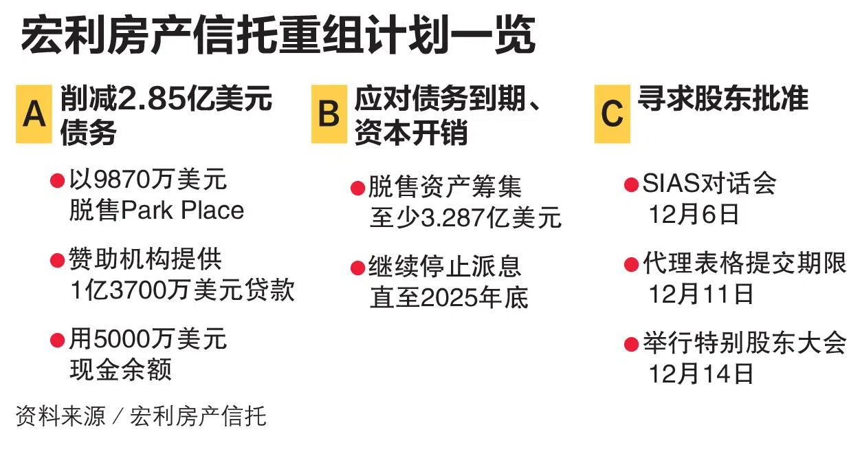 信托指出,由于资本重组计划,债权人(银行)将同意豁免信托过去和现有债务违约的后果,并将所有现有贷款的到期日延长一年,并在2025年12月前暂时放宽债务条款。这使信托有更多的时间来脱售资产筹集资金还债。债权人还把规定的总负债与资产比率顶限暂时从60%提高到80%,以及把利息覆盖率顶限从两倍修改为1.5倍,直至2025年底。