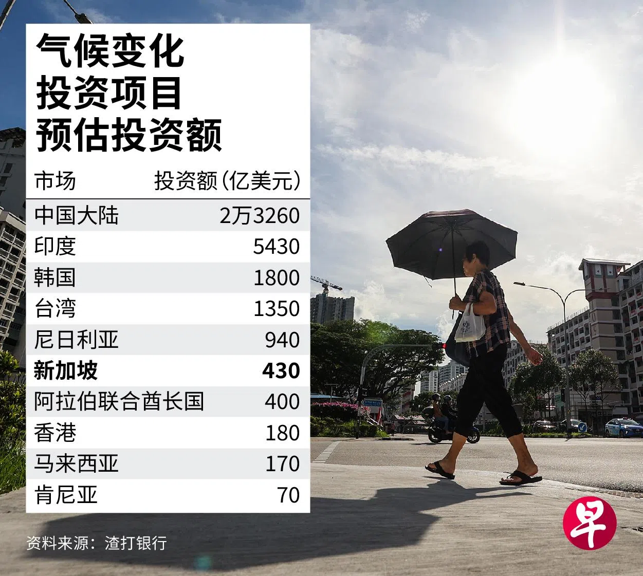 作为区域金融中心的新加坡,能协助个人投资者投资亚洲气候变化项目。一项调查显示,到了2030年,本地投资者在这方面的投资额可能多达430亿美元(约575亿新元)。