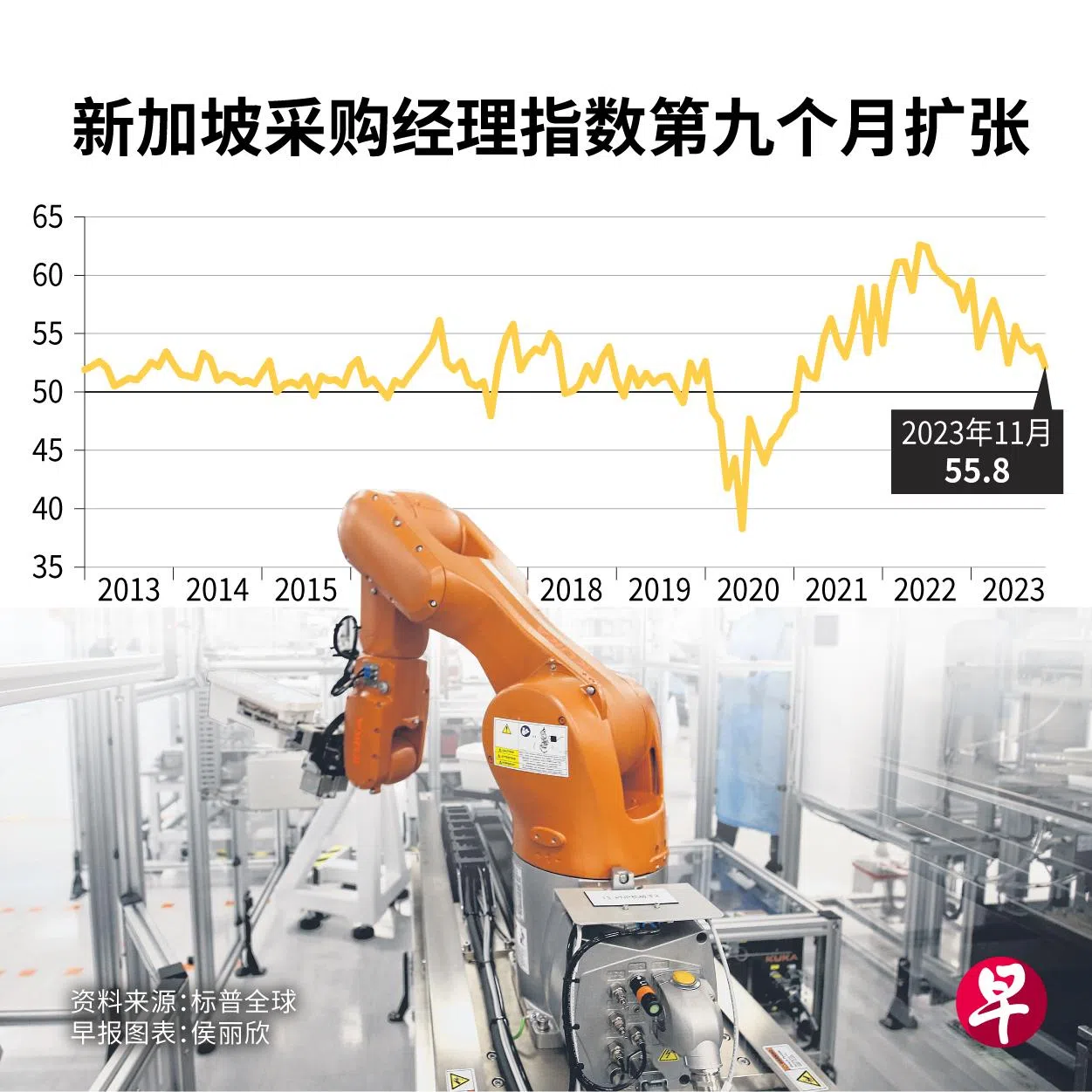 根据标普全球(S&P Global)星期二(12月5日)发布的最新调查报告,经季节性调整的标普全球新加坡采购经理指数(PMI)从10月的53.7上升至11月的55.8,增速是去年11月以来的新高。