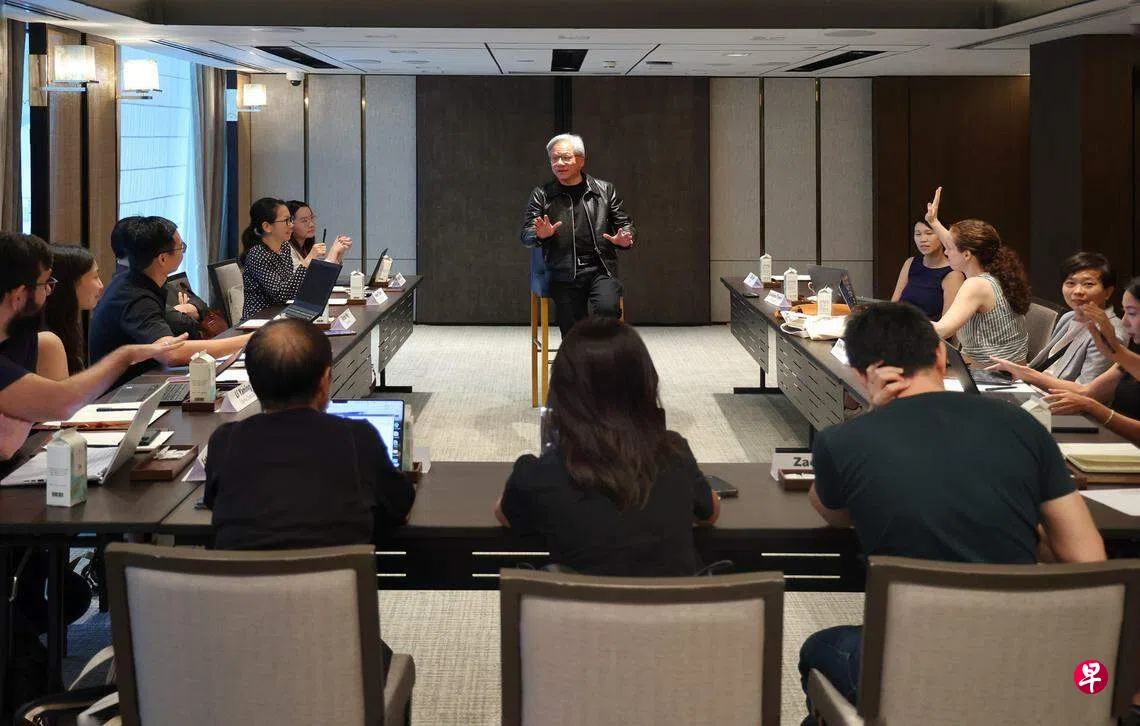 领军英伟达的黄仁勋,今年9月获选美国《时代》杂志的AI领域百大影响力人物(TIME100 AI),他星期三(12月6日)早晨在香格里拉酒店与13家国际及本地媒体举行闭门圆桌会,接受长达一小时的“拷问”。