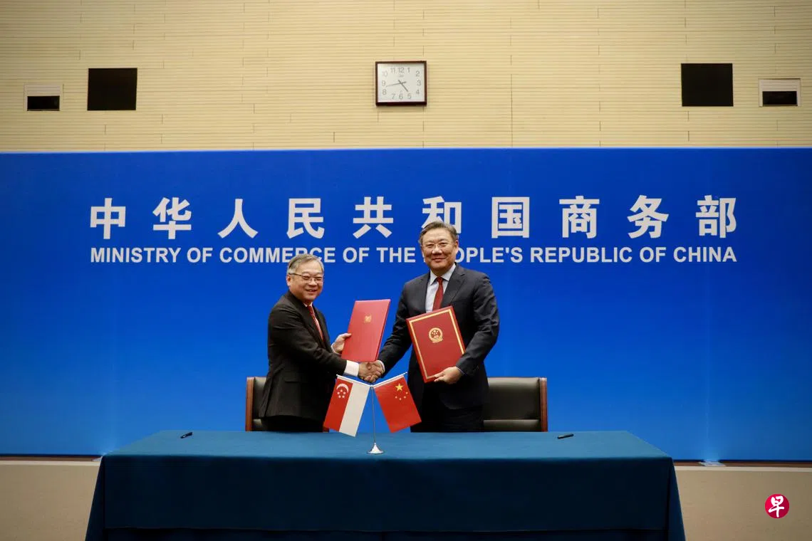 根据贸工部星期四(12月7日)发布的文告,贸工部长颜金勇和中国商务部部长王文涛星期四在天津召开的第19次新中双边合作联合委员会(Joint Council for Bilateral Cooperation,简称JCBC)上,签署了升级版新中贸易协定。