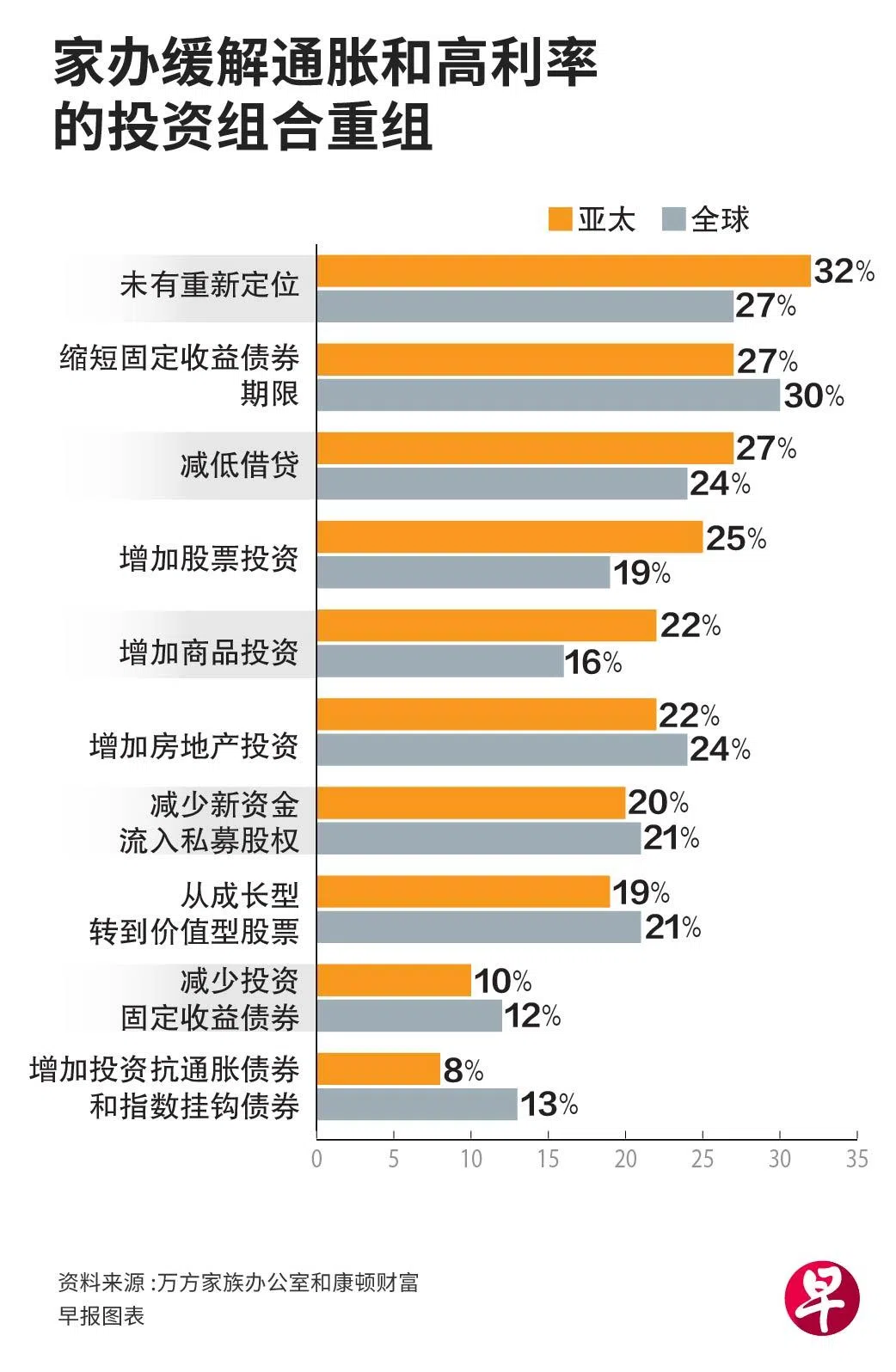 在极具挑战的市场环境下 ,2022年亚太地区的家庭办公室(简称家办)的投资回报跑赢大市,超过一半家办的资产管理规模取得增长。不过,比起往年积极寻找新的投资机会和分散投资组合,家办的投资优先对冲通货膨胀风险和探讨另类资产类别的投资。