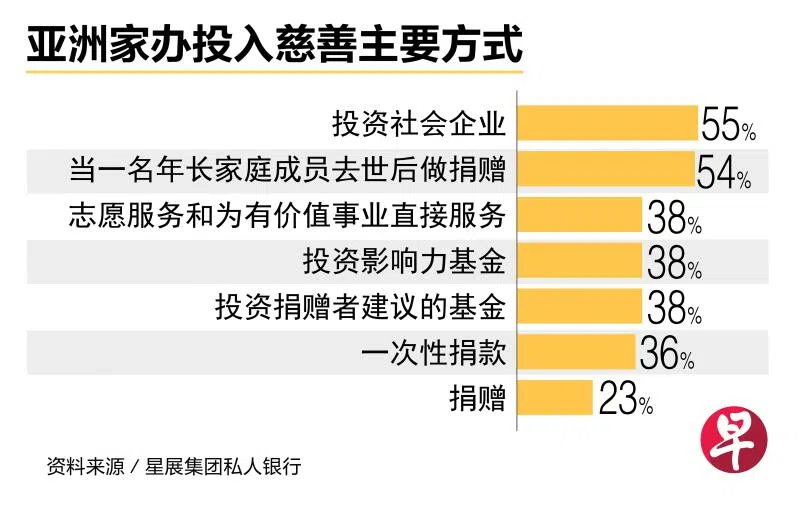 星展银行财富规划家族办公室及保险解决方案区域主管李文修接受《联合早报》采访时说,亚洲家办越来越热衷慈善事业的其中一个原因,是“第二代成员对家族财富有更多话语权,他们对环保或参与影响力投资比较感兴趣,想为社会做出更多贡献”。