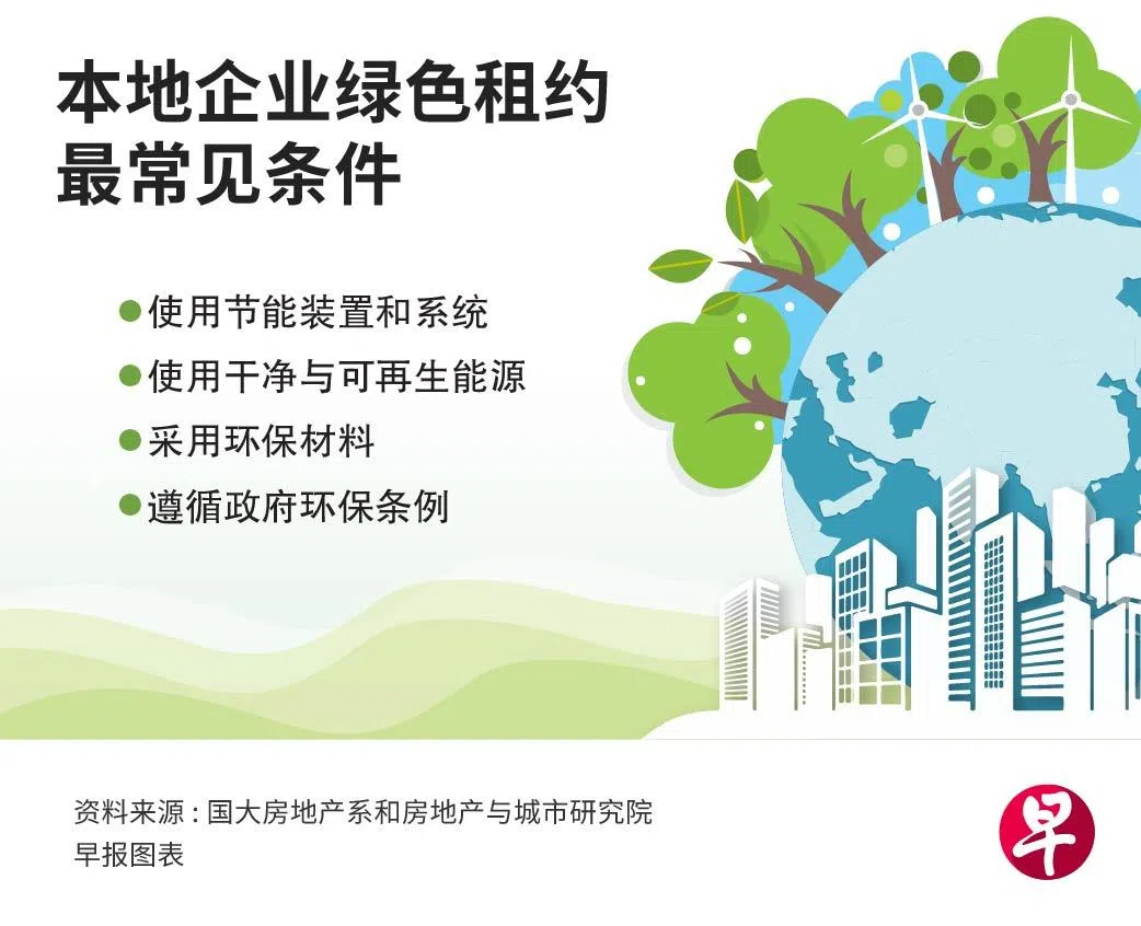 撰写报告的国大房地产系教务长讲座教授程天富说,受访企业认为,绿色租约与节能和使用可持续发展材料的关系最大,能直接让使用建筑空间的企业受益。租户也希望业主能在租约中列明会遵循环保条件。它们较不关注提高环保意识、促进健康等“软性”目标。