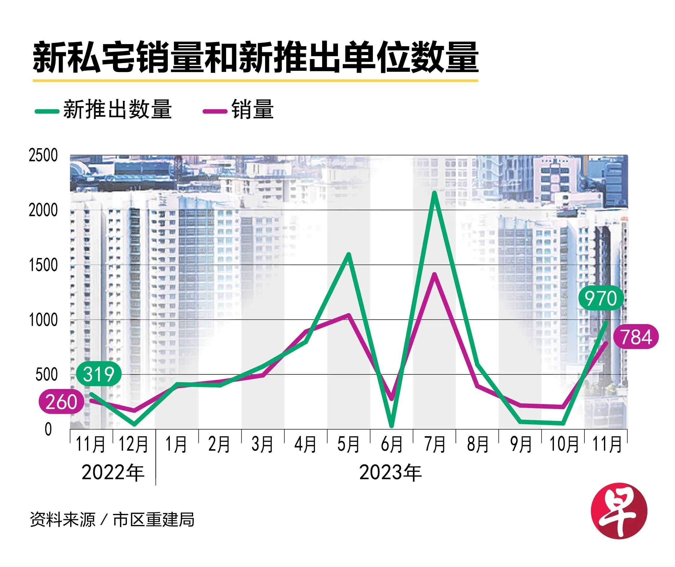 在11月开盘的三个大型私宅项目,推动本地整体新私宅销量环比暴增近三倍至784个单位,是自7月之后的最高纪录。