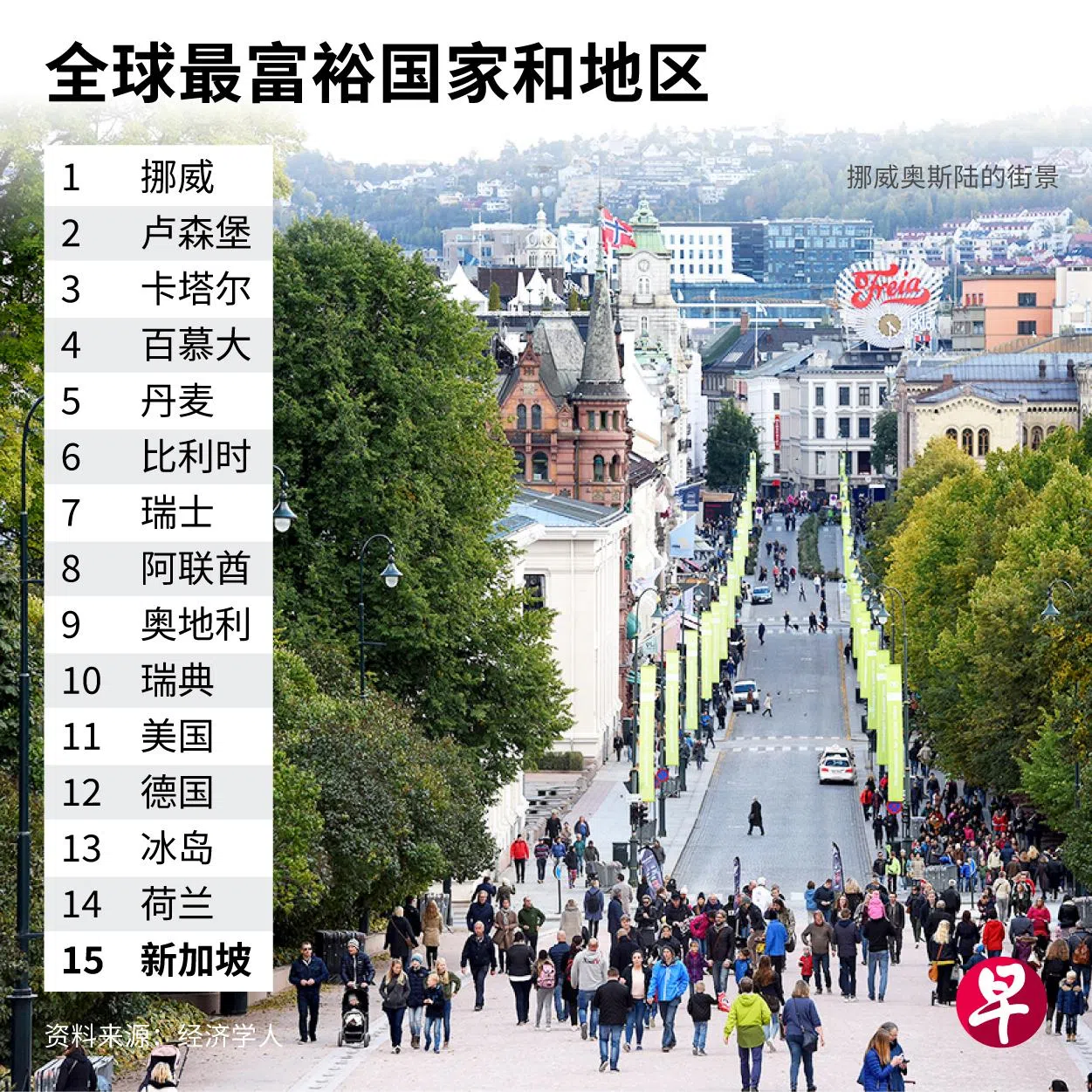 不过,如果把成本差异和工作时长计算在内,新加坡的人均国内生产总值降至6万2500美元,排名跌至第15。升至第一名的是挪威。