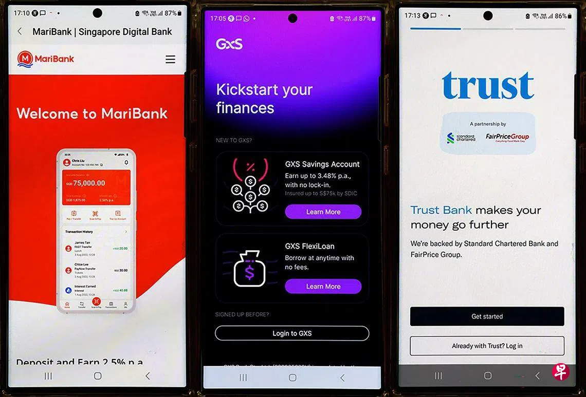 新加坡的五家数码银行推出服务至今已一年半左右,期间面对越来越高的基准利率,所有数码银行都还有盈利,但市场硝烟不断,领先的优信银行(Trust Bank)最近还进一步把个人储蓄存款利率上调至最高可达3.00%,Maribank则依然“无条件”提供2.88%利率。