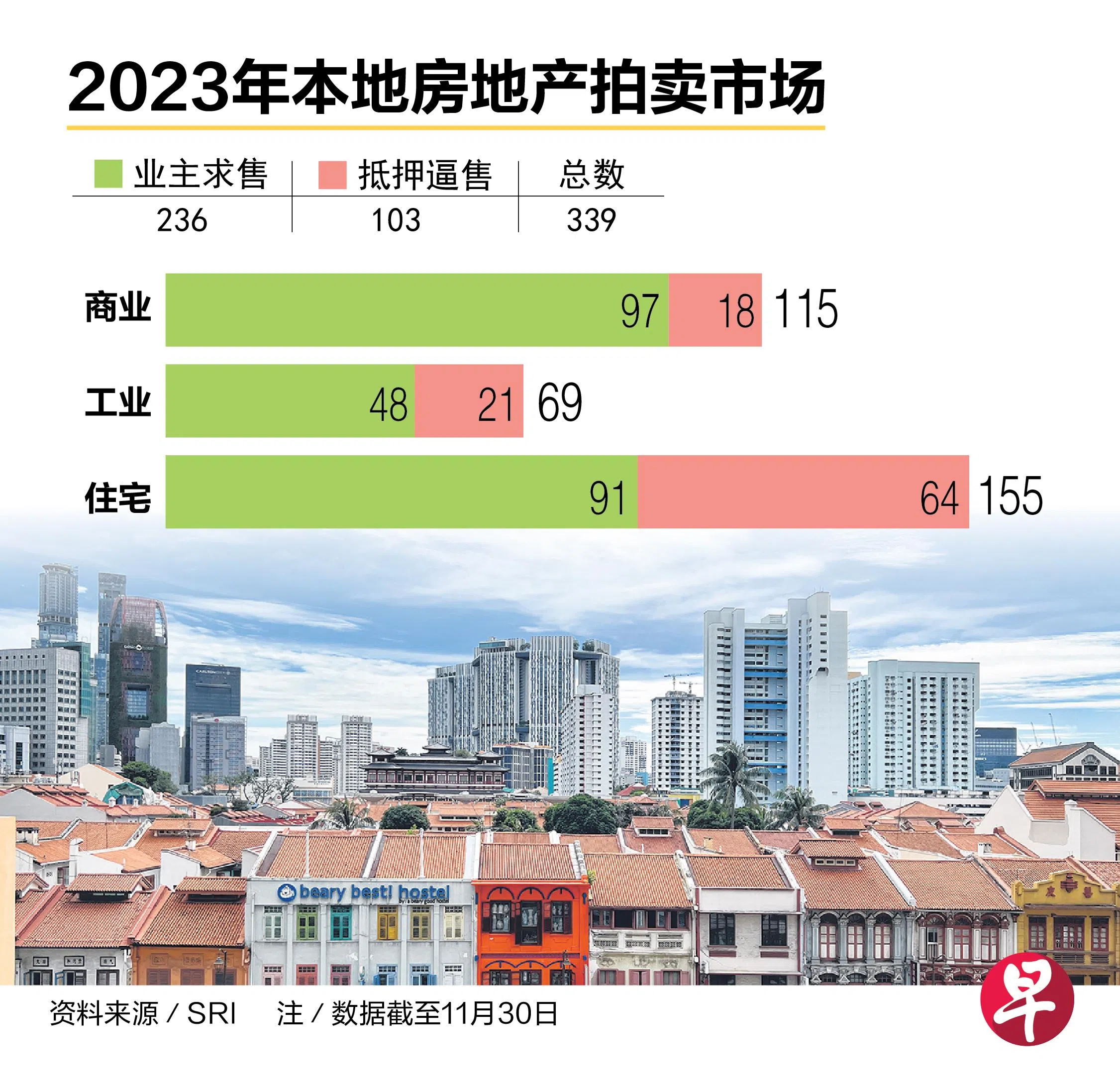 根据房地产公司SRI提供的数据,截至11月底(下同,今年)在拍卖市场求售的房地产中,103个属于抵押逼售(mortgagee sale),236个是业主求售(owner sale),拍卖底价总值超过12亿8000万元。