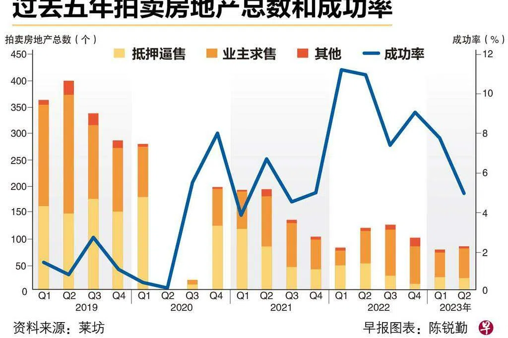 截至今年11月底,通过拍卖市场求售的房地产数量达339个,比去年全年的432个低了21.5%,拍卖底价总值也比去年低12.8%。
